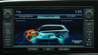 Eine Anzeige im Blickfeld informiert über den Energiefluss des