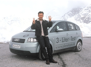 Wissensmagazin “Planetopia” eine beispiellose Fahrt. Zwei aus 700 Bewerbern ausgeloste Kandidaten sollten möglichst sparsam vom niederländischen Scheveningen bis zum Fuß eines Tiroler Gletschers fahren. Gegenspieler der beiden Amateure Inge Sternath und Frank Jendrek war der Sparprofi Gerhard Plattner auf einem stärkeren A2 1.4 TDI (55 kW/75 PS, Normverbrauch 4,3 l/100 km). Selbstverständlich handelte es sich bei allen drei Fahrzeugen um absolute Serienmodelle, lediglich ergänzt um geeichte Spezialcomputer zur peniblen Verbrauchsmessung. Das