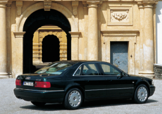 Audi A8 Photo: Audi Ingolstadt - Doppelsieg für die AUDI AG bei der Wahl "Beste Autos 2003", die von rund 160.000 Lesern und Internet-Usern der Fachzeitschrift "auto motor und sport" und auto.t-online.de entschieden wurde: Audi A8 und Audi A4 setzten sich in ihren Klassen überzeugend durch. Dr. Martin Winterkorn, Vorstandsvorsitzender der AUDI AG, nahm die Auszeichnungen im Rahmen der traditionellen Feier in Stuttgart entgegen. In der Luxusklasse-Wertung legte der Audi A8 einen Blitzstart hin. Schon wenige Monate nach seiner Markteinführung hoben ihn 28,6 Prozent der Leser unter 13 Bewerbern mit deutlichem Vorsprung auf den Thron. Der Audi A8 festigte in kürzester Zeit bei Vergleichstests und in Kundenhand seinen Ruf als sportlichstes Modell der Luxusklasse. Auf dem Genfer Autosalon im März wird er seine Premiere als 4.0 TDI und in der Langversion A8L feiern. Der Audi A4 setzte sich in der besonders umkämpften Kategorie "Mittelklasse" mit 26,0 Prozent aller Votierungen durch und wiederholte damit seinen Sieg aus dem Vorjahr. 29 deutsche und internationale Wettbewerber standen zur Wahl. Die aktuelle Generation des Audi A4 debütierte im November 2000 als Limousine; im September 2001 rollte der A4 Avant an den Start. Seit April 2002 ergänzt das A4 Cabriolet die Palette. Mit sportlich-klarem Design, einer Motoren-Palette zwischen 75 und 253 kW (100 - 344 PS) sowie technischen Leckerbissen wie dem Allradantrieb quattro, Benzin-Direkteinspritzung oder der stufenlosen multitronic festigt der A4 seine Rolle als meistverkaufte Baureihe der Marke. (05. Februar 2003)