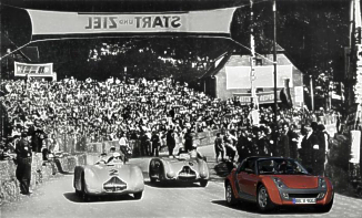 Photo: DC Böblingen - Im Rahmen des Jubiläums "100 Jahre Solitude-Rennen", das die smart gmbh als Partner begleitet, wird der smart roadster an den Start gehen. Bei Gleichmäßigkeitsfahrten am Samstag und Sonntag Nachmittag kommen jeweils acht Fahrzeuge zum Einsatz. Am Steuer der puristischen Zweisitzer sitzen nicht nur legendäre Rennfahrer aus den 50er und 60er Jahren - auch bekannte Motorsportgrößen aus heutiger Zeit werden im smart roadster Platz nehmen. Auf der 4,6 Kilometer langen Strecke wollen sie über mehrere Runden hinweg versuchen, den "alten Hasen" ihr Können zu beweisen und eine von Hans Herrmann vorgegebene Zeit nachzufahren. smart roadster und roadster-coupé sind für den Einsatz auf der historischen Rennstrecke wie geschaffen: Mit ihrer Markteinführung im April dieses Jahres wurde das Segment der kompakten und puristischen Roadster wiederbelebt, das es in dieser Form seit den 50er und 60er Jahren des vergangenen Jahrhunderts nicht mehr gegeben hat. Die dynamischen und agilen Zweisitzer bieten ein einzigartiges Fahrerlebnis, bei dem nicht nur das bloß Erreichen eines Zieles, sondern schon der Weg dorthin Freude macht. smart roadster und roadster-coupé lassen eine hohe Querbeschleunigung und damit hohe Kurvengeschwindigkeiten zu. Die Kombination aus direktem Handling, einer hervorragenden Kurvenlage und einem hohen Maß an Komfort macht so ein intensives und unmittelbares Erleben der Straße möglich, wie es kaum ein anderes kompaktes Fahrzeug bieten kann. Bei einer Motorleistung von 60 kW und einem Gewicht von nur 790 Kilogramm bietet der smart roadster mit 13,2 Kilogramm pro Kilowatt (9,6 kg pro PS) ein niedriges Leistungsgewicht, das sich entsprechend positiv auf die Fahreigenschaften auswirkt. Vor 100 Jahren wurde das erste Solitude-Rennen auf einer Bergrennstrecke von Stuttgart zum Schloss Solitude ausgetragen. Mit den Jahren wuchs dieses Rennen zu einer der renommiertesten Veranstaltungen in der Motorsport-Szene heran. Nach dem Zweiten Weltkrieg trafen sich dort im Sommer eines jeden Jahres die Welt- und Europameister, um sich im Wettkampf auf der schwierigen Strecke zu messen. Als am 18. Juli 1965 das letzte Rennen gefahren wurde, waren 200.000 Zuschauer anwesend. (17. Juni 2003)