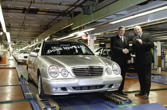 Sindelfingen/Stuttgart - Das letzte T-Modell der Mercedes-Benz E-Klasse der Baureihe 210 verlässt heute das DaimlerChrysler-Werk Sindelfingen. Hans-Heinrich Weingarten, Leiter DaimlerChrysler-Werk Sindelfingen, übergibt die Kombilimousine an Wolfgang Rolli, Leiter Mercedes-Benz Museum. Als letztes Fahrzeug geht der brillantsilberne E 320 CDI T damit traditionell in den Bestand des Museums in Untertürkheim über. Seit Produktionsbeginn 1996 lief das T-Modell der E-Klasse rund 262.000 mal in Sindelfingen vom Band. Rund 46 Prozent der Fahrzeuge gingen in den Export. Mit fast 56 Prozent des Absatzes war Deutschland der mit Abstand größte Einzelmarkt. Die USA folgen als größter Auslandsmarkt mit rund zehn Prozent aller verkauften T-Modelle dieser Baureihe. In den westeuropäischen Kernmärkten Frankreich, Italien und Großbritannien wurden rund 15 Prozent abgesetzt. Der weltweite Marktanteil des T-Modells im Vergleichsegment beträgt fast 27 Prozent, in Deutschland liegt er bei 29 Prozent. Damit gehört das T-Modell der E-Klasse zu den beliebtesten Automobilen in diesem Segment. (06.03.2003)