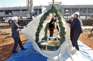 Photo: VW Die Volkswagen Mechatronic GmbH & Co KG, ein Gemeinschaftsunternehmen der Volkswagen AG und der Siemens VDO Automotive AG, hat jetzt Richtfest für ihre neue Fabrik in Stollberg gefeiert. Dort werden künftig Pumpe-Düse-Elemente für den Einsatz in Dieselmotoren (TDI) entwickelt und gefertigt. Repräsentanten beider Unternehmen begingen das Ereignis gemeinsam mit Bauarbeitern, Handwerkern und Ingenieuren der beteiligten Unternehmen. An der Zeremonie nahmen auch der Sächsische Staatsminister für Wirtschaft und Arbeit Dr. Martin Gillo und weitere Gäste aus Wirtschaft und Politik teil. Die Volkswagen Mechatronic investiert insgesamt 270 Millionen Euro. Es sind zwei Ausbaustufen vorgesehen. In der ersten Stufe umfasst die Fertigungskapazität zwei Millionen Pumpe-Düse-Elemente pro Jahr. Produktionsbeginn ist im 4. Quartal 2004. Nach Realisierung der ersten Aufbaustufe werden Anfang 2006 bis zu 380 Beschäftigte am Standort tätig sein. In der zweiten Stufe ab Mitte 2007 sollen dort bis zu 690 Mitarbeiterinnen und Mitarbeiter beschäftigt werden. Dr. Folker Weißgerber, Mitglied des Vorstands der Volkswagen AG, dankte den Bauleuten für die bislang geleistete Arbeit. Er betonte: "Unternehmerische Entschlossenheit verbunden mit handwerklichem Können sind hier in Stollberg die Garanten für eine neue Fabrik. Eine Fabrik, die in wenigen Monaten vielen Menschen einen Arbeitsplatz geben wird." Dr. Klaus Egger, Mitglied des Vorstands der Siemens VDO Automotive AG, hob in seiner Ansprache in der Feierstunde hervor: "Wir werden mit diesen Injektoren mit dazu beitragen, dass die zukünftigen Motoren die ab 2005 geltenden Emissionsgrenzwerte sogar unterschreiten. So arbeiten wir alle nicht nur für mehr Fahrspaß bei niedrigeren Verbrauchswerten, sondern auch für eine saubere Umwelt." Die Grundfläche des Standorts der Volkswagen Mechatronic umfasst 17.250 Quadratmeter. Die Fertigungsstätte besteht aus einer Halle mit einem Bürorandbau. Im Randbau befinden sich Büros, Labore, Umkleide- und Sozialbereiche sowie das Betriebsrestaurant. Die Fertigungsbereiche befinden sich unter einer 42 Meter und einer 66 Meter weit gespannten Stahlkonstruktion. Sie werden getrennt durch einen dreigeschossigen Massiveinbau, der so genannten Kommunikationsachse. Diese verbindet ein Galeriegang mit dem Randbau. Die Ostfassadenseite ist für eine Erweiterungsoption vorgesehen. (13.10.2003)