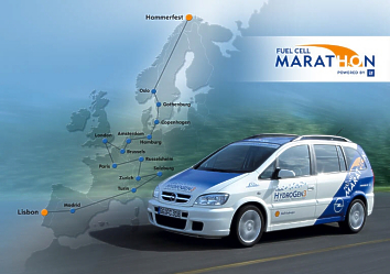 Photo: Opel Rüsselsheim/Zürich - Mit einem einzigartigen Marathon-Test durch Europa wollen Opel und General Motors (GM) jetzt die Alltagstauglichkeit und Dauerhaltbarkeit ihrer Brennstoffzellen-Fahrzeuge erproben. Die Langstreckenfahrt des auf dem Opel Zafira basierenden Wasserstoff-Prototypen "HydroGen3" geht über eine Distanz von rund 10.000 Kilometern und führt durch 14 Länder. Der Startschuss für die "Test-Tortur" mit insgesamt 20 durchschnittlich 500 Kilometer langen Tagesetappen fällt am 3. Mai 2004 in Hammerfest (Norwegen), der nördlichsten Stadt Europas. Ziel des "Opel Fuel Cell Marathon - powered by GM" ist dann am 11. Juni das nahe der portugiesischen Hauptstadt Lissabon gelegene Cabo da Roca, der westlichste Punkt des Kontinents. In Deutschland sind Hamburg (am 14. Mai) und Darmstadt (26. Mai) Stationen des Brennstoffzellen-Marathon. Angetrieben wird der HydroGen3 von einem 60 kW/82 PS starken Elektromotor. Eine Brennstoffzelle erzeugt aus Wasserstoff, der in flüssiger Form im Tank mitgeführt wird, die notwendige elektrische Energie. Halt macht der Dauerläufer mit dem zukunftsweisenden Antriebskonzept bei seiner außergewöhnlichen Reise in 14 Großstädten. Dort können Interessierte das Marathon-Fahrzeug in Aktion erleben. Gleichzeitig hat die Öffentlichkeit die Gelegenheit, sich in einer Ausstellung über Themen rund um den Brennstoffzellen-Antrieb und den Energieträger Wasserstoff zu informieren. Außerdem geben Fachleute aus dem Brennstoffzellen-Entwicklungszentrum von GM im Rahmen eines Fachvortrags an den jeweiligen Universitäten einen Überblick über den Stand der Brennstoffzellen- und Wasserstoff-Technologie. Gefahren wird der HydroGen3 von Journalisten und Prominenten aus den 14 Ländern. Dr. Byron McCormick, Executive Director GM Fuel Cell Activities: "Die Fahrerwahl zeigt, dass unser Experiment unter ganz realistischen Bedingungen stattfindet. Diese Alltagserfahrungen sind eine wichtige Ergänzung unserer bisherigen Testergebnisse." Und davon hat der Brennstoffzellen-Prototyp schon eine Menge gesammelt: Insgesamt 132 unterschiedliche Prüfprozeduren haben die HydroGen3-Fahrzeuge bisher in aller Welt unter allen möglichen Klimabedingungen absolviert. Die 10.000 Kilometer durch Europa bergen ebenfalls viele Herausforderungen: zum Beispiel verschiedenste Straßenverhältnisse, Temperaturdifferenzen von über 40 Grad Celsius, Passfahrten in den Alpen oder auch heftige Platzregen am Mittelmeer. Weltweit arbeiten rund 600 Mitarbeiter in den USA, Japan und Deutschland (Mainz-Kastel) unter dem Dach von GM Fuel Cell Activities (FCA) daran, den Brennstoffzellen-Antrieb zur Serienreife zu entwickeln. (23. April 2004)