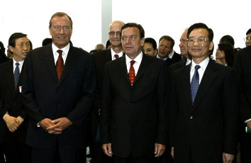 Treffen im Kanzleramt: DaimlerChrysler-Vorstandsvorsitzender Prof. Jürgen E. Schrempp nach den Gesprächen mit Bundeskanzler Gerhard Schröder und dem chinesischen Ministerpräsidenten Wen Jiabao. (Photo: DC)