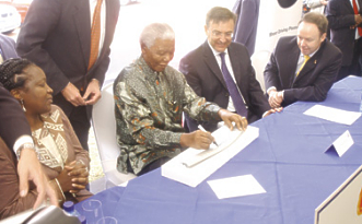 Photo: BMW Johannesburg/München - Die BMW Group feiert den zehnjährigen Geburtstag der Demokratie in Südafrika mit dem Mann, der das Sinnbild für die demokratische Entwicklung des Landes darstellt: Nelson Mandela. Dr. Norbert Reithofer, Mitglied des Vorstands der BMW AG und Mandela persönlich gaben heute bekannt, dass das Unternehmen zur Feier des Demokratiejubiläums weltweit zehn von Nelson Mandela signierte BMW 318i zugunsten des Nelson Mandela Children's Fund versteigern wird. Das Jahr 2004 steht in Südafrika ganz im Zeichen des zehnten Jahrestages der ersten demokratischen Wahlen. Die Regierung möchte mit den geplanten Feierlichkeiten nicht nur ein Zeichen der Einigkeit setzen, sondern auch die Errungenschaften betonen, die das Land mit den demokratischen Strukturen in der letzten Dekade gemacht hat. Nicht nur in Südafrika selbst, sondern weltweit finden dazu Veranstaltungen statt. Die südafrikanische Regierung richtet zwar den Hauptteil der nationalen Events selbst aus, hat jedoch auch an alle gesellschaftlichen Bereiche appelliert, sich an diesem wichtigen Jahrestag zu beteiligen. Als Reaktion darauf hat BMW Südafrika beschlossen, sowohl auf lokaler als auch auf internationaler Ebene einen Beitrag zu leisten: Mitarbeiter des Werks Rosslyn werden eine limitierten Auflage von zehn 318i Individual-Fahrzeugen anfertigen, die weltweit versteigert wird. Diese "Democracy Cars" sind Teil einer unternehmensweiten Spende von Material, Zeit und Arbeitskraft: Involvierte Mitarbeiter "spenden" ihre Arbeitszeit und arbeiten ohne Bezahlung. Das Management wird seine Arbeitszeit entsprechend ausdehnen, um die Kollegen in der Produktion zu unterstützen. Lieferanten wie Dura, Faurecia, Laepple, Lear, Lemfoerder, Kromberg & Schubert und Venture haben sich bereit erklärt, Teile und Komponenten für die Fahrzeuge kostenlos zur Verfügung zu stellen. Die Unternehmenszentrale trägt die Kosten aller im Rahmen der Herstellung der zehn "Democracy Cars" eingeführten Materialien. Die zehn "Democracy Cars" sollen weltweit verkauft bzw. versteigert werden. Der Hauptteil des erzielten Erlöses wird dem Nelson Mandela Children's Fund (Nelson Mandela Kinderfonds) gespendet. "Der Fonds ist eine beispielhafte gemeinnützige Institution mit hervorragend strukturierter Unternehmens-führung", begründete Dr. Reithofer die Kooperation. "Vision und Hauptaufgabe des Fonds sind in vieler Hinsicht konform mit den Zielen, die die BMW Group im Rahmen ihres sozialen und gesellschaftspolitischen Engagements verfolgt". Um den Wert der Fahrzeuge bei Sammlern zu erhöhen, wird Nelson Mandela persönlich jedes der Individualfahrzeuge signieren. Er wird seine Unterschrift auf eine prominente Stelle im Interieur des Fahrzeuges setzen. Zudem wird an jedem der BMW 318i eine Plakette angebracht, die die Echtheit der Unterschrift bescheinigt. BMW Niederlassungen in den USA, Australien, Großbritannien, Neuseeland und Deutschland schließen sich der Aktion an, um Mittel für den Nelson Mandela Fonds zu sammeln. Diese Fahrzeuge werden vor Ort zugunsten des Mandela Fonds versteigert. Drei Fahrzeuge verbleiben in Südafrika und werden dort an lokale Interessenten veräußert. (26.08.2004)  |