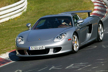 Photo: Porsche Stuttgart - Der Carrera GT ist das schnellste Auto auf der Nürburgring-Nordschleife. Mit einer Zeit von 7.32,44 Minuten markierte Horst von Saurma, Chefredakteur des deutschen Fach-Magazins "sport auto", am Steuer des 612 PS-starken Porsche eine neue Rekordrunde für straßenzugelassene Fahrzeuge. Er absolvierte die 22,6 Kilometer lange Eifel-Strecke mit einer Durchschnittsgeschwindigkeit von 164 km/h. "Es war ein Ritt auf des Messers Schneide. Die Strecke war an einigen Stellen schmutzig, was die Sache nicht einfacher machte", strahlte Horst von Saurma nach seiner Rekordrunde überglücklich. Seit zehn Jahren vergibt das Magazin einen (inoffiziellen) Wander-Pokal an den Fahrer, der mit einem straßenzugelassenen Fahrzeug die schnellste Runde auf dem Nürburgring fährt. Damit ist die Jagd um die beste Ring-Runde zu einer Prestige-Angelegenheit geworden, denn nach wie vor ist der Nürburgring die ehrlichste und beste Aussage für die Qualität eines Fahrwerks, der Motorleistung, Aerodynamik und natürlich auch von Reifen. Seit 1995 verbesserte sich die Rundenzeit von 7.52 Minuten nahezu Jahr für Jahr auf jetzt 7.32,44 Minuten. Wolfgang Dürheimer, Porsche-Entwicklungsvorstand: "Die von Horst von Saurma erzielte Zeit ist hervorragend und zeigt das Potential unseres Fahrzeugs auf. Bis vor kurzem waren solche Werte ausschließlich mit reinrassigen Renn-Prototypen realisierbar." Der Journalist von Saurma fuhr die schnelle Runde im Rahmen eines sogenannten "Super-Tests", den das Magazin regelmäßig durchführt. Top-Runden auf dem Nürburgring, stets vom gleichen Tester gefahren, gehören dabei zu den Kriterien. Wolfgang Dürheimer:" Gerade deshalb sind die 7.32,44 Minuten für uns gut einzuordnen und wertvoll." (20.9.2004) |