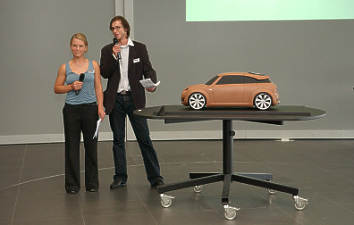 Photo: BMW München - Die BMW Group hat erneut die besten Nachwuchs-Formgestalter ausgezeichnet. 73 Modelleure aus dem gesamten Bundesgebiet hatten ihre Entwürfe bei der BMW Design Modelling Competition (DMC) eingereicht. Überzeugt haben die Entwürfe von Heiko Geisenhainer von der Fachhochschule Aachen und das Team-Modell von Gerti Feichtner und Michael Meinzinger von der Fachhochschule für Porzellan und industrielle Formgestaltung Selb. Zum zweiten Mal hatten Studierende und Absolventen der Bereiche Gestaltung und Industriedesign die Möglichkeit, ihr kreatives Potenzial und fachliches Know-How zu zeigen. Die Aufgabenstellung der Design Modelling Competition: Eine vorgegebene, zweidimensionale Design-Skizze eines MINI Rennwagens sollte unter Vorgabe eines technischen Packages in ein dreidimensionales Modell umgesetzt werden. Die Teilnehmer konnten für ihren Entwurf zwischen einer computergestützten, virtuellen Realisierung (CAS = computer aided styling), oder einer handwerklichen Umsetzung aus Modelliermasse (Clay) wählen. Die 17 Finalisten präsentierten im BMW Group Forschungs- und Innovationszentrum (FIZ) ihre Arbeiten der Jury. Anschließend ehrte BMW Group Designchef und Juryleiter Christopher Bangle die acht Preisträger. In seiner Rede zeigte sich Bangle angetan von den eingereichten Arbeiten. Er lobte die Leidenschaft, mit der die Bewerber sich des Themas angenommen hätten und machte noch einmal auf die wichtige Rolle der Modelleure im Designprozess aufmerksam. Bei der Präsentation der verschiedenen Entwürfe zeigte sich der große Spielraum, den die Modelleure bei der Interpretation der Designskizzen hatten. Professor Dr. Dr. e.H. Burkhard Göschel, Vorstand für Entwicklung und Einkauf der BMW AG, betonte die Einzigartigkeit eines solchen Wettbewerbs in der gesamten Automobilindustrie. Als Schirmherr der Veranstaltung überreichte er zusammen mit Bangle die Preise. Dabei machte er deutlich, dass die BMW Group großes Interesse daran habe, talentierte und ambitionierte junge Menschen an das Unternehmen zu binden. Der erste Platz in der Kategorie Clay ging an das Team von Gerti Feichtner und Michael Meinzinger von der Staatlichen Fachschule für Porzellan und industrielle Formengestaltung in Selb, den ersten Platz in der Kategorie CAS belegte Heiko Geisenhainer von der Fachhochschule Aachen. Die Gewinner überzeugten mit einer ausgewogenen Umsetzung aus Technik und Interpretation. Prämiert wurden sie mit einem MINI Cooper S für ein Jahr - inklusive Fahrertraining. Über den zweiten Preis, eine dreitägige Flugreise zum Automobilsalon nach Paris, freuten sich Jochen Bierwerth von der Fachhochschule München (Kategorie CAS) sowie Thomas Doppler und Kristin Hahn von der Fachhochschule für Porzellan und industrielle Formgestaltung Selb (Kategorie Clay). Der dritte Preis schließlich war je eine hochwertige BMW Lifestyle Digitaluhr, die für vier Entwürfe verliehen wurde. Im Bereich CAS wurden Anja Weddeler sowie Alexander Schlesier (beide Hochschule für Kunst und Design Halle) ausgezeichnet. Auch das Team von Sven Paulick und Benjamin Kreuzer (Fachhochschule für Porzellan und industrielle Formgestaltung Selb) und Sebastian Driesch von der Staatlichen Fachhochschule für Keramik belegten mit ihrem Clay-Entwurf den dritten Platz. (16.09.2004) |