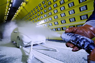 Nach nur zweijähriger Bauzeit nahm die Wiener RTA Rail Tec Arsenal Fahrzeugversuchsanlage GmbH im Januar 2003 den größten Klima-Wind-Kanal der Welt in Betrieb. Hier werden seitdem komplette Hochgeschwindigkeitszüge, Lokomotiven, Straßenbahnen, Lastkraftwagen, Busse und Personenwagen auf ihre Praxiseinsätze vorbereitet. Die rund 140 Meter lange, 50 Meter breite und 20 Meter hohe Anlage beherbergt zwei parallel angeordnete und voneinander unabhängig steuerbare Klima-Wind-Kanäle, die Entwicklungsingenieuren für Schienen- und Straßenfahrzeuge ideale Testbedingungen bieten: Auf dem Rollenprüfstand (850 kW) des großen, 100 Meter langen Klima-Wind-Kanals lassen sich Hochgeschwindigkeitszüge bei einem Tempo von bis zu 300 km/h und Temperaturen von minus 50 bis plus 60 Grad Celsius erproben. Der kleine Klima-Wind-Kanal misst in der Länge 31 Meter und ist mit einem Dynamometer (250 kW) ausgestattet, das Straßenfahrzeuge bis auf eine Geschwindigkeit von 120 km/h beschleunigt. Der elektrische Energiebedarf des Testzentrums von insgesamt rund 15 Megawatt entspricht dem einer Kleinstadt mit etwa 3000 Einwohnern. Je nach Versuchsprogramm können in beiden Anlagen quasi auf Knopfdruck Wind, Regen, Schnee oder extremes Sonnenlicht erzeugt werden. Die Möglichkeit, nicht nur jedes denkbare Klima zu erzeugen, sondern auch bestimmte Praxissituationen wie Tunnelfahrten oder Stop-and-go-Verkehr zu simulieren, machen das Wiener Testzentrum weltweit einzigartig. Orkanartiger Sturm, extremer Regen oder Sonne pur Dank der einzigartigen Hightech-Ausstattung lassen sich in der Wiener Testanlage nahezu alle Wetterbedingungen simulieren - auf Knopfdruck und stets unter reproduzierbaren Laborbedingungen: