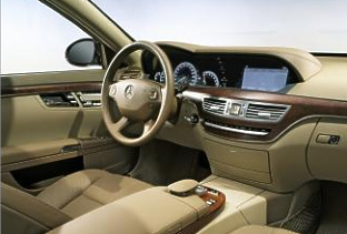 Gegenüber dem Vorgänger ist das neue Spitzenmodell aus Stuttgart in allen Dimensionen gewachsen. Zwei Karosserievarianten mit 5076 oder 5206 Millimetern Länge stehen zur Auswahl - das sind 33 bzw. 43 Millimeter mehr als bei der bisherigen S-Klasse. Der Radstand vergrößert sich um 70 bzw. 80 Millimeter auf 3035 und 3165 Millimeter. Zudem ist die Karosserie 16 Millimeter breiter und 29 Millimeter höher als bisher. Bedienkonzept: Farb-Displays, Direktwahltasten und COMAND-Controller Dafür sorgt auch das neu entwickelte, erprobte Bedienkonzept. Es basiert auf umfangreichen Studien der Ergonomie und Wahrnehmungspsychologie und berücksichtigt die Ergebnisse von Akzeptanzuntersuchungen mit Mercedes-Kunden in allen Teilen der Erde. Das wesentliche Merkmal des intelligenten Bedienkonzepts der neuen S-Klasse ist der schnelle Zugriff auf besonders häufig genutzte Funktionen. Daher ist das System gezielt redundant gestaltet: Je nach seiner Gewohnheit steuert der Autofahrer zum Beispiel Autoradio, TV-Empfänger, CD-/DVD-Wechsler, Telefon und Navigation entweder über konventionelle Schalter, Tasten im Multifunktions-Lenkrad oder mithilfe des weiterentwickelten COMAND-Systems. Die Direktwahltasten in der Mittelkonsole sind ergonomisch so gut platziert, dass der Autofahrer sie bequem und ohne hinzuschauen bedienen kann. Auch die Steuerung der serienmäßigen Klima-Automatik ist auf zwei verschiedenen Wegen möglich: per COMAND oder mittels einer formschönen Schalterleiste unterhalb der Lüftungsdüsen. Ein weiteres Novum, das die Bedienung erleichtert und ein modernes Cockpit-Design ermöglicht, ist DIRECT SELECT - die elektronische Steuerung des serienmäßigen Siebengang-Automatikgetriebes 7G-TRONIC durch leichtes Antippen eines formschönen Hebels rechts an der Lenksäule. Dank dieser Technik können die Mercedes-Ingenieure auf den üblichen Automatik-Wählhebel in der Mittelkonsole verzichten und die Tunnelverkleidung neu gestalten. Auch das innovative "Cockpit Management and Data System" - kurz COMAND - präsentiert sich in neuem Design und bietet noch mehr Möglichkeiten. Neben den bekannten Telematik- und Audiogeräten sind jetzt auch verschiedene Fahrzeug-funktionen, für die bisher Einzelschalter benötigt wurden, in das System integriert. Als zentrales Bedienelement dient der neue COMAND-Controller auf dem Mitteltunnel. Mit seiner Hilfe werden die Haupt- und Untermenüs ausgewählt und die gewünschten Funktionen aktiviert. Ist ab Werk ein Autotelefon an Bord, lässt sich die weiche Handauflage hinter dem Controller zur Seite klappen; unter ihrem Deckel verbirgt sich die Telefontastatur. Komfort: Neue Sitze mit Massage-Funktion und Luftfederung serienmäßig