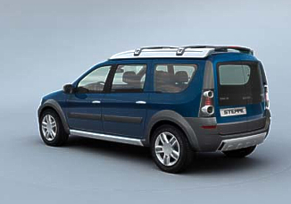 Der Logan Steppe Concept rollt auf 17-Zoll-Felgen und verkörpert mit seinen klar strukturierten Formen die schon vom Logan her bekannte Robustheit. Die seitlich weit herumgezogenen Stoßfänger, die Radlaufverbreiterungen und die mit Metallic-Einsätzen versehenen Seitenschweller verleihen dem Show-Car seinen markanten Charakter. Kühlergrill und Scheinwerfer sind direkt vom Logan abgeleitet und unterstreichen den sportlichen Auftritt. Besondere technische Details, wie die Scheibenwischer mit elastischer Wischlippe oder die Xenon-Scheinwerfer mit Leuchtdioden, lassen den Logan Steppe Concept noch moderner und ansprechender wirken. Die Bremsscheiben mit groß dimensionierten Bremssätteln sorgen für sichere Verzögerung.