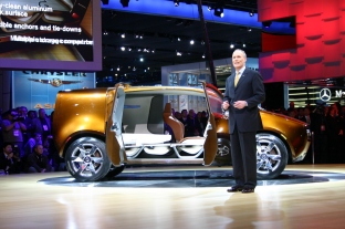Zu dem in drei unterschiedliche Zonen aufgeteilten Interieur zählen des weiteren ein hypermodernes Digital-Cockpit und eine komfortable Komfort-Zone rund um den Fahrersitz. Die Türanordnung (eine Flügeltür auf der Fahrer-, zwei gegenläufig öffnende Türen auf der Beifahrerseite) ist ebenso asymmetrisch ausgelegt wie das Glasdach, in das Solarzellen und ein innovatives Dachträgersystem integriert sind. Aber auch für die Mitnahme von Haustieren bietet das 4,39 Meter lange SUV interessante Lösungen. Als Antrieb für den Bevel käme für Nissan ein durchzugsstarker und umweltfreundlicher 2,5-Liter-V6-Motor mit angeschlossenem Hybridsystem infrage. Die Steuerung von Lenkung, Drosselklappe und Bremsen erfolgt über drahtlose „by wire“-Systeme. „Wir sehen eine große Chance, den Markt für SUV-Modelle deutlich auszuweiten“, ist Bruce Campbell, Vize-Präsident Design, Nissan Design America Inc., überzeugt. „In Zukunft könnte diese Fahrzeuggattung noch viel stärker auf die multifunktionalen Anforderungen ihrer Nutzer eingehen. Wie das funktionieren könnte, wollen wir in Detroit mit dem Bevel demonstrieren.“