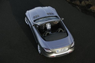 Wie die Coupéversion vereint auch der neue Mercedes-Benz SLR McLaren Roadster den Mythos der erfolgreichen SLR-Rennsportmodelle aus den Fünfzigerjahren des letzten Jahrhunderts mit der innovativen Technik moderner Formel-1-Fahr-zeuge des Teams Vodafone-McLaren-Mercedes. Typische Stilelemente wie zum Beispiel die pfeilförmige Spitze des Formel-1-Silberpfeils schaffen die optische Verbindung zu den Renn-Boliden. Die SLR-Legende der Fünfzigerjahre lebt stilistisch in den markanten seitlichen Kiemen, Sidepipes hinter den Vorderrädern und den weit öffnenden Flügeltüren weiter. Der neue Roadster profitiert technisch von der langjährigen Erfahrung von Mercedes-Benz und Formel-1-Partner McLaren. Seine Karosserie ist, abgesehen von zwei aus Aluminium gefertigten Motorrahmen, vollständig aus Carbonfaser-Werkstoffen (CFK) gefertigt. Dies macht ihn zu einer Ausnahmeerscheinung unter den Hochleistungs-Sportwagen. Speziell für den Roadster wurde die aufwendige Carbontechnik für das Monocoque intelligent weiterentwickelt. Das Ergebnis sind geringes Gewicht, vorbildliche Energieabsorption und damit sehr hohe Insassensicherheit sowie eine bislang bei offenen Fahrzeugen nicht erreichte Torsionssteifigkeit. Sie ermöglicht herausragende Fahreigenschaften, wie sie sonst nur geschlossene Supersportwagen bieten. Das puristische Stoffverdeck ist hochgeschwindigkeitstauglich