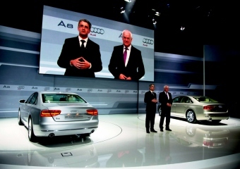 Rupert Stadler, Vorstandsvorsitzender - Michael Dick Vorstand Technische Entwicklung „Der Audi A8 steht für alles, was wir bei Audi können“, so charakterisiert Rupert Stadler, Vorstandsvorsitzender der AUDI AG, das neue Flaggschiff. „Unser Ziel war es, dem perfekten Automobil möglichst nahe zu kommen“. Und wirklich, der neue A8 wirkt eleganter und coupéhafter als sein Vorgänger.