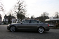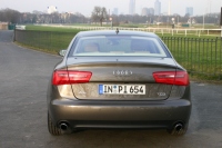 Mitverantwortlich für die elegante Sportlichkeit des Exterieurdesigns sind die neuen Proportionen: Mit einer Länge von 4,92 Meter, einer Breite von 1,87 Meter und einer Höhe von nur 1,46 Meter, ist die neue A6-Limousine 12 mm kürzer, dafür aber 19 mm breiter und 4 mm flacher als der Vorgänger. Die lange Motorhaube, die niedrige Dachlinie und die markante Liniengrafik erzeugen ein dynamisches Gesamtbild. Neu im Angebot beim Audi A6 sind die Voll-LED‘s, die die charakteristische Tagfahrlichtgrafik noch unterstreichen. Alle Aggregate im A6 nutzen Start-Stop-Automatik, Rekuperation sowie das innovative Thermomanagement. Die besondere Effizienz verdankt der A6 auch dem konsequenten Leichtbau, der eine Gewichtsreduzierung um bis zu 80 Kilogramm erzielte. Neu im A6 ist die elektromechanische Lenkung sowie das serienmäßige Fahrdynamiksystem Audi drive select, das um den neuen Modus efficiency erweitert wurde. Mit an Bord ist die die komfortable Luftfederung adaptive air suspension samt geregelter Dämpfung. Wie für die Oberklasse bietet Audi auch für den A6 die neuesten Assistenz- und Multimedia-Systeme an. Dazu gibt es optional ein Head-up-Display, das wichtige Informationen auf die Windschutzscheibe projiziert. Die Rückfahrkamera rear view macht das Einparken kinderleicht. Das komplexe Fahrerassistenzsystem Adaptive Cruise Control (ACC) mit Stop & Go-Funktion inklusive Audi pre sense regelt die Geschwindigkeit und den Abstand zum vorausfahrenden Fahrzeug. Des Weiteren bietet Audi den Spurwechselassistenten Audi side assist an, den Nachtsichtassistenten und den Parkassistenten. Für den Vielfahrer ist auch die Tempolimitanzeige ganz wichtig, dank der man im deutschen Schilderdschungel den Überblick behält. Das MMI Navigationssystem plus mit MMI touch lässt sich weitgehend über das Touchpad steuern steuern. Die Online-Dienste, bei denen Audi mit dem Dienstleister Google kooperiert, verbinden den A6 über das Bluetooth-Autotelefon online mit dem Internet. Ein UMTS-Modul holt Bilder und Informationen von Google Earth auf den Monitor und spielt sie mit der Navigationsroute zusammen, ein WLAN-Hotspot stellt den Kontakt zu mobilen Endgeräten her. An der Spitze der HiFi-Palette steht das Advanced Sound System von Bang & Olufsen. Der Audi A6 ist eine Limousine, die sich so nahe an der Oberklasse bewegt, dass die Übergänge in vielen Punkten fließend sind. Komfort, sportliche Effizienz und herausragende Technik, der neue Audi A6 punktet in allen Bereichen. Preislich startet der Audi A6 3.0 TFSI bei 43.361,34 Euro (netto), inklusive der zahlreichen Sonderausstattungsfeatures kostet der Testwagen zzgl. 19% MwSt. 87.194,98 Euro. (29. Februar 2012) Photos: Automotive Intelligence