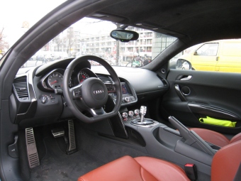 Turbinenartige Leistungsentfaltung bis in höchste Drehzahlbereiche und hohes maximales Drehmoment, dazu ein faszinierender Sound, das sind die Grundcharakteristika eines perfekten Sportwagenmotors und damit auch des Audi R8. Der 420 PS starke Achtzylinder mit Benzindirekteinspritzung erreicht ein maximales Drehmoment beträgt 430 Newtonmeter, die von 4.500 bis 6.000 1/min anliegen. 90 Prozent des maximalen Drehmoments liegen in einem breiten Drehzahlband zwischen 3.500 und 7.600 l/min an. Und auch die Spitzenwerte überzeugen. Die maximale Drehzahl liegt bei 8.250 l/min. In 4,6 Sekunden sprintet der R8 aus dem Stand auf 100 km/h. Die Höchstgeschwindigkeit liegt bei 301 km/h. Optional ist das sequentielle Schaltgetriebe Audi R tronic, das auch über die Schalttasten am Lenkrad zu bedienen ist. Durch die „shift by wire“-Technologie werden sehr kurze Schaltzeiten und ein exzellentes Leistungsgewicht bei gleichzeitig kompakter Baugröße des Getriebes möglich. Der Sportmodus garantiert mit schnellen Schaltvorgängen höchsten Fahrspaß. Zusätzlich ist ein Automatikmodus wählbar. Quasi selbstverständlich bei diesem Hochleistungssportler ist der permanente Allradantrieb, der die Leistung mittels Viscokupplung variabel an Vorder- und Hinterachse verteilt. Eine Rahmenstruktur in Audi Space Frame Bauweise ASF bildet die tragende Basis der Vollaluminium-Karosserie. Sie liefert mit ihrer perfekten Synthese von minimaler Masse und maximaler Steifigkeit das Fundament für höchste Fahrdynamik und ist zugleich Voraussetzung für das überragende Leistungsgewicht von nur 3,71 kg pro PS.