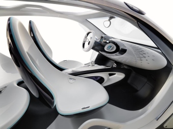 Zum smart Markenerlebnis passen auch mehr als zwei Sitzplätze: Das stellt der smart fourjoy unter Beweis. Die Studie besitzt alle typischen smart Attribute und verkörpert damit das unbeschwerte urbane Lebensgefühl „pure urban joy of life“. Vier vollwertige Sitze bei minimaler Fahrzeuglänge – der smart fourjoy zeigt erstmals die Dimensionen des smart Viersitzers der nächsten Generation. Türen, Heckscheiben und Dach werden noch nicht dargestellt, wodurch der Betrachter freien Blick auf den futuristisch anmutenden Innenraum hat. Mit seinen kompakten Maßen (Länge/Breite/Höhe: 3.494/1.978/ 1.494 Millimeter) und einem Wendekreis von 9,1 Metern setzt der smart fourjoy auf die markentypische Wendigkeit und kann seine Stärken besonders in den Metropolen der Welt ausspielen. Und dank des aktuellen electric drive mit 55-kW-Permanentmagnetmotor bewegt sich der smart fourjoy lokal emissionsfrei, agil und ohne Schaltunterbrechungen. Zudem hat der Viersitzer viele genetische Anlagen des kultigen Ur‑smart. „Der smart fourjoy ist das perfekte Icon unserer smart Designphilosophie, die in eine neue Ära übertragen wird. Erstmalig zeigen wir die zukünftig sportliche Viersitzigkeit der neuen smart Familie“, so Gorden Wagener, Designchef der Daimler AG. „Die smart-typische Silhouette, die klaren Linien und Formen und auch die Weiterentwicklung des smart Gesichts machen diese Studie zu einer modernen Design-Ikone.“ Zahlreiche Designelemente verweisen auf die erste smart Baureihe: Dazu zählen unter anderem die extrem kurzen Überhänge, die weit außen in den Ecken platzierten Räder, die in die massive tridion Zelle integrierten Rückleuchten sowie das kugelförmige Kombiinstrument. „Mit dem smart fourjoy zeigen wir eine Studie, die das einzigartige Design und den urbanen Fahrspaß des smart fortwo wunderbar in einen außerordentlich kompakten Viersitzer überträgt“, so smart Chefin Dr. Annette Winkler. „Der fourjoy vereint zahlreiche Details früherer Showcars, auf die wir sehr positive Rückmeldungen erhalten haben. Seine äußeren Proportionen verraten schon viel über das Erscheinungsbild unseres viersitzigen Serien-smart, der Ende 2014 auf den Markt kommt und es auch Familien ermöglichen wird, gemeinsam im smart unterwegs zu sein.“ Das Exterieur: Die tridion Sicherheitszelle bleibt einzigartiges Fahrzeugbestandteil Die betont dreidimensionale, aufrechte Front gibt dem fourjoy eine ausdrucksstarke Erscheinung, die mit einem frischen Lächeln freundlich, aber bestimmt dem Betrachter entgegen blickt. Im Grill trägt er stolz sein großes Markenemblem. Die Wabenstruktur der Lufteinlässe an der Front und die überwölbten, sinnlich ausgeführten Karosserieflächen betonen die Verwandtschaft zu den Studien smart for-us (Detroit 2012) und smart forstars (Paris 2012), auf die es sehr positive Rückmeldungen von Kunden gab. Ein bestimmendes Merkmal ist die stark ausgeprägte tridion Zelle. Bei der Studie besteht sie aus poliertem Vollaluminium, ihr schimmerndes Hochglanz-Finish betont den Premiumcharakter der Marke und lässt den smart fourjoy futuristisch und edel wirken. In Kontrast zum Aluminium der tridion Zelle steht der weiße Perleffekt-Lack von Stoßfängern, Fronthaube und Heckklappe. Blick zurück nach vorn: Wie bei der ersten Generation des smart fortwo sind die Rückleuchten in die tridion Zelle integriert. Turbinenartig wurden dort Cubes ins Plexiglas eingearbeitet. Die Frontscheinwerfer kommen ohne Deckglas aus, was den dreidimensionalen Eindruck des u-förmigen Tagfahrlichts verstärkt. Bei Front- wie Heckleuchten kommen ausschließlich LED zum Einsatz. Den lebensfrohen Charakter des Fahrzeugs betonen transparente petroleumfarbene Formteile. Sie kommen beim Windabweiser oben an der Frontscheibe sowie seitlich an den A-Säulen und beim hinteren Dachspoiler zum Einsatz. In Funktion und Farbe erinnern sie augenzwinkernd an Tennis-Caps der 90er Jahre. Der Innenraum: Futuristische Lounge-Sitze für vier Ohne Türen, Heckscheibe und Dachpanel holt der smart fourjoy die Stadt förmlich nach innen. Verbindende Elemente zwischen Exterieur und Interieur sind die Griffe für Fahrer und Beifahrer auf den Seitenschwellern sowie die Öffnungen in der Dachstruktur. Am auffälligsten im Innenraum sind die beiden futuristisch anmutenden Vordersitze und die ebenso gestaltete Rücksitzbank. Die Sitzschale wirkt wie aus einem Guss. Die Rückseite der Sitze ist in Dunkelchrom ausgeführt. Seitlich schlingt sich um die Sitze eine kederartige Linie, die ebenso petroleumfarben wie die Plexiglas-Akzente im Exterieur ist. Am Fahrzeugboden wechseln sich perforierte und glatte Flächen ab. Da der Boden dunkel gehalten ist, scheinen die Sitze zu schweben. Die Sitze und die Armaturentafel werden von einer mittleren, durchgehenden Struktur getragen. Sie wird von einer positiv überspannten Fläche belegt, die touch-sensitive Bedienfunktionen beinhaltet. Die Armaturentafel besitzt Tiefenwirkung und greift mit Waben und Verlauf zwei Themen des Exterieurs auf. Der massive Instrumententräger besteht aus transparentem, beleuchtetem Plexiglas, in das Aussparungen gefräst wurden. Die auffällige mehrdimensionale Wabenstruktur entstand dadurch, dass an diesen Stellen weißer Kunststoff mit Perleffekt angegossen wurde. Das kugelförmige Kombiinstrument erinnert ebenso wie das einspeichige Lenkrad formal an den ursprünglichen smart. Zwei Smartphones sind im Armaturenbrett und auf dem Mitteltunnel im Fond angebracht und erlauben zeitgemäße Connectivity und maßgeschneidertes Entertainment für alle vier Passagiere. Der Antrieb: Lokal emissionsfreier Fahrspaß Der im Heck untergebrachte Elektroantrieb basiert auf dem aktuellen smart fortwo electric drive. Dank seines 55-kW-Permanentmagnetmotors lässt sich der smart fourjoy agil und spritzig fahren. Die Lithium-Ionen Batterie besitzt eine Kapazität von 17,6 kWh. Komplett entleert, lässt sich die Batterie in den Stromsystemen der meisten Länder 