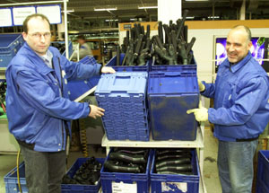 Photo: VW Wolfsburg - Seit vergangenem Dienstag kommt bei Volkswagen ein neues kostensparendes Behältersystem in der Produktion zum Einsatz, das gleichermaßen nach ökonomischen und ökologischen Kriterien entwickelt wurde. In diesen sogenannten Kleinladungsträgern (KLT) werden sämtliche Fahrzeugteile transportiert. Bis Ende 2003 werden drei Millionen Stück der neuen KLT die bisherigen ersetzen und somit in allen Bereichen der Fertigung Einzug erhalten. Das Besondere an den von Volkswagen und der Firma Arca Systems, Schwerin, entwickelten Behältern ist ein um fast 40 Prozent geringeres Gewicht bei nahezu 40prozentig höherem Fassungsvermögen. Sie bestehen zu 100 Prozent aus recyceltem Polypropylen, das aus der Verwertung der alten Behälter stammt. Damit werden die europäischen Forderungen der Verpackungsordnung weit übertroffen. Obwohl es sich jetzt um eine einwandige Konstruktion mit glattem Boden handelt - und nicht wie in der Vergangenheit um eine doppelwandige mit Waffelboden - bleibt die Stabilität genauso erhalten, bestätigte das Fraunhofer Institut in Dortmund. Damit entsprechen die neuen Behältnisse der VDA Empfehlung 4500, die die Qualitätsanforderungen regelt. Ein gutes Jahr tüftelten und prüften Ingenieure und andere Fachleute von Volkswagen und Arca Systems an diesem neuen System. Detaillierte, permanente Praxistests, Materialkontrollen und Farbuntersuchungen, die im Arca Systems-eigenen Technikum in Schwerin durchgeführt wurden, begleiteten den Entstehungsprozess. Das neue Behältersystem mit der Bezeichnung RL System (Re-Design für leichtes VDA Behältersystem) soll nun nicht nur in der Automobilbranche, sondern auch weltweit in anderen Industrien eingesetzt werden, in denen Ökonomie und Ökologie einen hohen Stellenwert besitzen. (20. April 2001) [Home] [ News] [ Diskussion] [ Kalender] [ Jobs] [ Travel & Golf] |