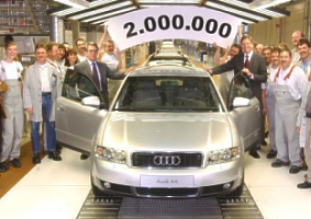 Zweimillionster Audi A4 in Ingolstadt gefertigt Photo: Audi Ingolstadt - Der zweimillionste Audi A4 hat in Ingolstadt die Montagelinie verlassen: ein lichtsilberner Audi A4 3.0 multitronic. "Damit haben wir erneut einen Meilenstein in der Audi Produktions-Geschichte gesetzt", so Dr. Jochem Heizmann, Produktionsvorstand der AUDI AG. Das Jubiläumsauto gehört zur sechsten Generation der meistverkauften Audi Modellreihe, die im November 2000 in den deutschen Markt eingeführt wurde. Sechs Jahre zuvor hatte der erste Audi A4 als Nachfolger des Audi 80 Premiere. Der Audi 80 wurde in vier Generationen von 1972 bis 1995 mehr als 4,5 Millionen Mal gebaut. "Die aktuelle Generation des Audi A4 hat Zeichen im Premiumsegment der automobilen Mittelklasse gesetzt", so Heizmann. "Sie verbindet die jahrzehntelange Erfahrung des quattro- und TDI-Pioniers Audi mit dem Anspruch auf zukunftsweisende Technik. Besonders stolz sind wir auf die hervorragende Nachfrage im In- und Ausland. Wir produzieren derzeit in Ingolstadt den Audi A4 mit mehr als 1.320 Fahrzeugen pro Tag an der Kapazitätsgrenze." Der Erfolg des A4 basiert nicht zuletzt auf einer breit gefächerten Palette von Benzin- und Dieselmotoren sowie in dem Segment einzigartigen technischen Highlights wie dem permanenten Allradantrieb "quattro" oder der stufenlosen Automatik "multitronic". Allein im vergangenen Jahr produzierte Audi 305.081 A4 Modelle, davon 80.869 Avant. Der quattro-Anteil betrug mit 66.750 Fahrzeugen rund 22 Prozent. Der Diesel-Anteil lag mit 150.729 Fahrzeugen bei 49,4 Prozent. Im Februar gewann der A4 bei der Wahl "Beste Autos 2002" der Zeitschrift "auto motor und sport". Mehr als 162.000 Leser wählten den A4 zum beliebtesten Auto in der Kategorie "Mittelklasse". 28 zur Wahl stehende deutsche und internationale Wettbewerber wurden damit auf die Plätze verwiesen. Die Leser der Fachzeitschrift "Autoflotte" kürten ebenfalls im Februar den A4 zur besten Mittelklasse-Flottenlimousine des Jahres 2001. (26. März 2002) [Home] [ News] [ Diskussion] [ Kalender] [ Jobs] [ Travel & Golf] |