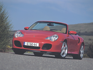 Photo: Porsche Stuttgart - Unter den 911 Cabriolets gibt es ein neues Spitzenmodell: Üppige Lufteinlässe an Bug und Flanken signalisieren, dass nach 14 Jahren wieder ein offener Porsche Turbo auf dem Markt ist. 309 kW (420 PS) liefert der von zwei Ladern beatmete Sechszylinder-Boxermotor bei 6.000 Umdrehungen pro Minute. Wer lieber weniger schaltet, wird vom durchzugsstarken Motor nicht bestraft. Zwischen 2.700 und 4.600 Umdrehungen pro Minute kann das maximale Drehmoment von 560 Newtonmeter abgerufen werden. Atemberaubende Fahrleistungen Die damit verbundenen Fahrleistungen des 911 Turbo Cabriolets sind im wahrsten Sinn atemberaubend. Aus dem Stand sprintet der Turbo mit serienmäßigem Sechs-Gang-Schaltgetriebe in 4,3 Sekunden auf 100 Stundenkilometer. Die 160 km/h-Marke erreicht er in 9,5 Sekunden. Erst bei einer Geschwindigkeit von 305 km/h endet sein Vorwärtsdrang. Wirtschaftlich und sauber durch VarioCam Plus Die Aufladung ist beim Porsche-Turbomotor mit einer variablen Gaswechselsteuerung kombiniert, was diesen Hochleistungsmotor technisch noch exklusiver macht. Das System besteht aus vier Ventilen pro Zylinder, stufenlosen Nockenwellenverstellern sowie umschaltbaren Ventilstößeln und trägt die Bezeichnung VarioCam Plus. Damit lässt sich sowohl Leistung und Drehmoment optimieren, als auch Kraftstoffverbrauch und Abgas-Emissionen senken sowie die Laufkultur verbessern. Sechsganggetriebe oder Tiptronic S Serienmäßig ist das Turbo Cabriolet mit Sechsgang-Schaltgetriebe ausgerüstet. Auf Wunsch bietet Porsche den neuen Hochleistungssportwagen aber auch mit Tiptronic S-Getriebe an. Das Fünf-Gang-Automatikgetriebe, das sich auch manuell über Wipptasten am Lenkrad schalten lässt, ist speziell auf die Kraftentfaltung des Turbo-Motors ausgelegt. Dabei passen sich die Schaltpunkte stufenlos an die Fahrweise und das Streckenprofil an. Allrad-Antrieb für optimale Fahreigenschaften Wie das Coupé ist das neue 911 Turbo Cabriolet serienmäßig mit Allrad-Antrieb über eine Visco-Lamellenkupplung ausgerüstet. Auf griffiger Fahrbahn werden fünf Prozent der Motorkraft nach vorne geschickt. Verschlechtert sich der Fahrbahnzustand beispielsweise durch Nässe oder Glätte, können die Vorderräder bis zu 40 Prozent der Antriebskraft auf die Straße bringen. Hohe aktive Sicherheit gewährleistet Auch als offener Sportwagen erfüllt der 911 Turbo höchste Ansprüche an Steifigkeit und Fahrkomfort. Die Karosserie des 911 Turbo Cabriolet basiert auf der des Coupés. Die wesentlichen Unterschiede sind gezielte Verstärkungen, die die stabilisierende Wirkung des Blechdaches ersetzen. Wie bereits das 911 Carrera 4S Cabriolet erhielt die neue Turbo-Modellvariante durch die Summe der Rohbau-Änderungen eine Karosserie, die zu den steifsten aller offenen 911-Strukturen zählt. Die aktive Sicherheit des 911 Turbo Cabriolets wird durch die serienmäßige Ausrüstung mit dem Porsche Stability Management (PSM) maßgeblich unterstützt. PSM hat die Aufgabe, bei Überschreitung des Grenzbereichs das Fahrzeug durch gezielten Eingriff ins Motormanagement und Bremsen-System sowohl in Längs- als auch in Querrichtung zu stabilisieren. Der sportliche Charakter des 911 Turbo wird durch PSM nicht beeinträchtigt. Für außerordentliche Verzögerungsleistungen arbeitet das neue Turbo Cabriolet mit vier-Kolben-Festsättel sowie 330 Millimeter großen innenbelüfteten und gelochten Bremsscheiben an Vorder- und Hinterachse. Sie garantieren selbst unter hoher Belastung für kurze Bremswege. Auf Wunsch kann auch die Porsche Ceramic Composite Brake (PCCB) geordert werden. Die Keramik-Verbundbremsscheibe setzt Maßstäbe bei den Kriterien Ansprechverhalten, Fadingstabilität, Gewicht und Lebensdauer. Automatisches Verdeck öffnet auch während der Fahrt Zum Fahrkomfort gehört nicht nur ein verwindungssteifer Karosserieaufbau, sondern auch eine spielend leichte Fahrzeug-Bedienung. So lässt sich das Verdeck in nur rund 20 Sekunden entriegeln, nach hinten klappen und unter einer Abdeckklappe verstauen - selbstverständlich vollautomatisch auf Knopfdruck. Der Verdeck-Mechanismus lässt sich auch während der Fahrt bedienen. Bis Tempo 50 kann der Fahrer das Verdeck jederzeit öffnen oder schließen. (21. Juli 2003)