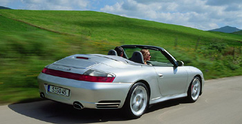 Photo: Porsche Stuttgart - Die Dr. Ing. h.c. F. Porsche AG, Stuttgart, zündet die nächste Stufe ihrer Modelloffensive: Mit dem 911 Carrera 4S Cabriolet geht im Oktober erstmals ein offener Sportwagen dieses Typs an den Start. Alle Antriebs- und Fahrwerkskomponenten sind auf die steife Cabrio-Karosserie abgestimmt. Ein zusätzlicher Garant für höchsten Fahrspaß auf kurvigen Landstraßen oder schnellen Autobahnabschnitten ist der bestens bekannte 3,6 Liter große Sechszylinder-Boxermotor mit 235 KW (320 PS). Zu den Sicherheitsreserven bei diesem Erlebnis gehören die serienmäßige elektronische Fahrdynamik-Regelung "Porsche Stability Management" (PSM), die in Kombination mit dem Allrad-Antrieb für ein besonderes Maß an Fahrstabilität sorgt. Das Stoffverdeck des Carrera 4S Cabriolet zeichnet sich nicht nur durch seine hohe Qualität und die besondere Z-Faltung aus: Auf Knopfdruck lässt es sich auch während der Fahrt öffnen und schließen. Bis Tempo 50 kann der Fahrer jederzeit das Verdeck per Tastendruck bedienen. Dabei dauert es nur rund 20 Sekunden, um das Dach zu entriegeln und nach hinten zu klappen, wo es unter einer Abdeckklappe verschwindet. Das charakteristische Leuchtenband zwischen den Rückleuchten - ein Erkennungsmerkmal der C4S-Modelle - konnte ohne Änderung vom Coupé übernommen werden. Der attraktive Gesamtauftritt des neuen Porsche wird optisch durch die im Vergleich zum 911 Carrera um 60 Millimeter breiteren, hinteren Kotflügel unterstrichen. Bei geschlossenem Dach beträgt die Höchstgeschwindigkeit des offenen 911 Carrera 4S mit Schaltgetriebe 280 km/h, was dem Niveau des Coupé entspricht. Auch den Spurt aus dem Stand auf Tempo 100 absolviert das Cabriolet in fast derselben Zeit wie das Coupé: Mit 5,3 Sekunden liegt es aufgrund seines Mehrgewichts von 70 Kilogramm nur zwei Zehntel-Sekunden hinter der geschlossenen Variante. Das neue Cabriolet von Porsche liefert mit seiner vom 911 Turbo übernommenen Bremsanlage ausgezeichnete Verzögerungswerte. Dazu tragen gelochte und innenbelüftete Bremsscheiben mit einem Durchmesser von 330 Millimeter bei. Für die Übertragung der Bremskraft auf die Straße sorgen 18 Zoll große Leichtmetallräder mit Reifen der Dimension 225/40 an der Vorderachse und 295/30 an der Hinterachse. Das Fahrzeug kann - wie übrigens auch der Turbo - auf Wunsch mit der wegweisenden Keramik-Bremsanlage Porsche Ceramic Composite Brake (PCCB) ausgerüstet werden. Das Carrera 4S Cabriolet verfügt über eine umfangreiche Serienausstattung. Dazu gehören beispielsweise Metallic-Lackierung, eine Voll-Lederausstattung, Hardtop und ein Windschott. Es wird in Deutschland 99.792 Euro (inklusive Mehrwertsteuer) kosten. Der einheitliche Euro-Grundpreis (ohne Mehrwertsteuer und länderspezifische Anforderungen) beträgt 85.900 Euro. In den USA wird das 911 Carrera 4S Cabriolet zum Preis von 93.200 Dollar angeboten. Die Markteinführung in Europa ist für Oktober 2003 vorgesehen. (26. Mai 2003)