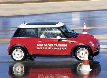 Photo: MINI/BMW München - Am 20. Juni 2003 startete das MINI Driver Training. Die MINI Fangemeinde kann damit das einzigartige Gokart-Feeling des agilen Kurvenflitzers bei verschiedenen Fahrmanövern in Reinform erleben - ohne Risiko und ohne Gefahren für sich oder andere. Denn das MINI Driver Training findet auf sicherem Terrain unter fachkundiger Anleitung statt. Anmelden kann sich jeder, der einen gültigen Führerschein hat. Trainiert wird mit dem MINI Cooper, die Fahrzeuge werden gestellt. Das Motto des MINI Driver Training lautet: "More Safety. More Fun." Dies bedeutet für die Teilnehmer einerseits wertvolle Erfahrungen und Fortschritte in der Fahrzeugbeherrschung, und andererseits Spaß pur beim Ausloten des Grenzbereiches von Mensch und Maschine. Der "finnische Rallye-Professor" Rauno Aaltonen - 1967 Sieger der Rallye Monte Carlo - hat das Programm für das MINI Driver Training mitentworfen. Das Ein-Tages-Programm kostet 325 Euro pro Person, Trainingsort ist das Fahrer-Trainings-Zentrum am Flughafen München. Die MINI Trainings finden zunächst als Pilotprojekt zwischen dem 20. Juni und 21. September 2003 statt. Informationen zum MINI Driver Training sind erhältlich im Internet unter www.MINI.de oder telefonisch unter der Hotline 01805-MINIDRIVE oder 01805-646 437. Verantwortung wahrnehmen: Trainierte Fahrer für mehr Sicherheit auf den Straßen Mit dem Driver Training stellt sich MINI seiner Verantwortung und sorgt aktiv für mehr Sicherheit im Straßenverkehr. Trotz einer Vielzahl von Fahrerassistenzsystemen spielt dabei der Fahrer noch immer die zentrale Rolle. Und mit dem Erhalt des Führerscheins ist man längst nicht auf die Gefahrensituationen im Straßenverkehr vorbereitet. Im MINI Driver Training lernen die Teilnehmer in Theorie und in verschiedenen Übungen, wie man im Fall eines Falles die Kontrolle behält. Hierzu zählen gezielte Notbremsungen, Notspurwechsel oder das Kontrollieren eines instabilen Fahrzustandes wie Untersteuern. Eine wesentliche Voraussetzung für den Erfolg solcher Fahrmanöver ist die richtige Sitzposition und Lenkradhaltung. Nur wer den richtigen Abstand zu den Pedalen und zum Lenkrad wählt, kann die Kontrolle über sein Fahrzeug richtig ausüben. Neben den praktischen Übungen gehören solche "Basics" deshalb genauso zum Programm des MINI Driver Training. Sicherheit und Spaß von der Theorie bis zur 180 Grad-Wende rückwärts Der Spaß beginnt schon in der Theorie: Die Instruktoren weisen die Teilnehmer in die Fahrphysik und Kunst der Fahrdynamik ein. Wie lange ist mein Anhalteweg bei einer Vollbremsung aus 30 und aus 50 km/h? Warum fährt man eigentlich immer genau dorthin, wo man hinschaut? Wann und wieso rutscht mein Auto in der Kurve über die Vorderräder? Und wie fange ich mein Auto dann wieder ein? Die Behandlung solcher Fragen erweitert nicht nur den Horizont, sondern macht auch Lust auf mehr: Auf die Praxis. Die Beklebung der Trainingsfahrzeuge verspricht dabei nicht zu viel: "More Safety" und "More Fun" gehören hier ganz eng zusammen. Die Teilnehmer können dort das MINI Gokart-Feeling bis in den Grenzbereich selbst "erfahren". Neben Notbremsung und Notspurwechsel sorgen vor allem Übungen wie ein Slalom auf Zeit oder eine 180 Grad-Wende rückwärts für enorm viel Spaß. Gerade diese "Agentenwende" eignet sich hervorragend als Orientierungs- und Koordinationsübung. Denn sie erfordert sehr viele Handgriffe in kürzester Zeit zum richtigen Zeitpunkt. Nicht zuletzt bietet diese Übung einen gehörigen Schuss an Fahrspaß. Mit Übergabe der Urkunde nach dem Training erhalten die Teilnehmer ihren persönlichen Beleg dafür, dass sie mit dem Training Fortschritte im sicheren Fahren und in der Fahrzeugbeherrschung gemacht haben. Sie erhalten mit der Urkunde aber auch ein Erinnerungsstück für ein besonderes Erlebnis in einer ganz neuen MINI Welt. (18.06.2003)
