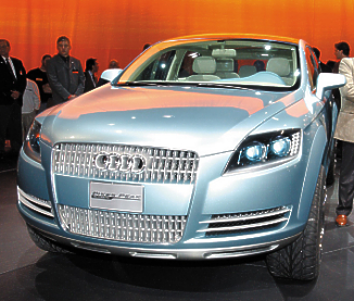 "Pikes Peak"- Concept Photo: Audi Ingolstadt - Das kommende große Sport Utility Vehicle (SUV) der Marke Audi wird den Namen Q7 tragen. Dies erklärte auf dem Pariser Automobilsalon Prof. Dr. Martin Winterkorn, Vorsitzender des Vorstands der AUDI AG. "Q bezeichnet neben den Kürzeln A, S oder RS eine neue Typenfamilie in unserem Haus. Die 7 zeigt die Positionierung zwischen A6 und A8", so Prof. Winterkorn. Der Q7 wird sein Marktdebüt Anfang 2006 geben. Als Serienversion folgt er der Konzeptstudie Pikes Peak quattro, die Audi bei der Detroit Motor Show 2003 vorgestellt hatte. Wie diese, wird auch der fünftürige Siebensitzer Q7 die Qualitäten eines vollwertigen Offroaders mit der Audi-typischen Dynamik einer leistungsstarken Sportlimousine vereinen. Zusätzlich wird der Audi-SUV ein Raumangebot bereit halten, das in der Klasse einen neuen Maßstab setzt. (23. September 2004) |