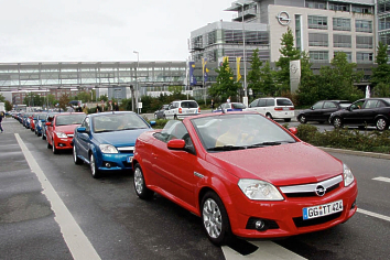 Photo: Opel Rüsselsheim - Mit einer bundesweiten Aktion lüftet die Adam Opel AG heute den Vorhang für den Tigra TwinTop. Noch vor der offiziellen Einführung im Handel zeigt das Unternehmen 40 Exemplare des neuen Cabrio-Coupés bei 200 Stadt- und Straßenfesten, lokalen Messen sowie Sport- und Kulturveranstaltungen in ganz Deutschland. Gemeinsam mit den Opel-Vertragspartnern vor Ort geht das Unternehmen so im Dialog mit den Kunden neue Wege und setzt auf den direkten Kontakt. Die Aktion läuft bis Ende September. Besucher haben die Gelegenheit, sich mit den technischen Innovationen des Neulings vertraut zu machen. Demonstriert wird unter anderem der clevere Verdeckmechanismus: Das elektrohydraulische Stahl-Klappdach verwandelt das Coupé in nur 18 Sekunden in ein Cabrio. Die Platz sparende Faltkinematik ermöglicht das mit 510 Litern klassengrößte Stauvolumen. Angetrieben werden die an der Aktion beteiligten Opel Tigra TwinTop von dem 1,4-Liter-TWINPORT-Aggregat (66 kW/90 PS) oder dem sportlichen 1.8 ECOTEC-Motor (92 kW/125 PS). Die Ausstattungslinien Enjoy und Cosmo sowie die beiden Farben Magmarot und Antiguablau unterstreichen den frischen Auftritt. Bereits auf dem Genfer Salon wurde der TwinTop zum "Cabrio des Jahres 2004" gekürt. Die Preise für den bereits bestellbaren kompakten Zweisitzer beginnen bei 16.695 Euro*. (27. August 2004) |