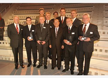 Besondere Ehre für die Preisträger: Der Präsident der Toyota Motor Corporation (TMC), Fujio Cho, würdigte sie persönlich und überreichte die Pokale. In Anwesenheit der Jury-Mitglieder Yoichi Tomihara (Präsident Toyota Deutschland), Markus Schrick, Johannes Herrlich, Burkard Weller (Vorsitzender des Händlerverbandes) sowie aller 600 deutschen Händler wurden die Inhaber der Autohäuser Kroh (Bad Berleburg), Schütt & Arens (Stralsund), Nix (Wächtersbach), Reith (Ingolstadt), Tschuk (Osterode) und Pöhland (Burgstaedt) ausgezeichnet. Mitglied der Jury ist außerdem Prof. Hannes Brachat. Der Preisverleihung ging ein anspruchsvolles Auswahlverfahren voraus. Alle 600 Toyota Händler wurden nach ihrer Leistungsfähigkeit und der Zufriedenheit ihrer Kunden bewertet. Die besten 30 stellten ihre innovativen und kundenfreundlichen Konzepte im After Sales Geschäft vor. Aus ihnen wurden dann die sechs Preisträger ausgewählt. (04.03.2005) |