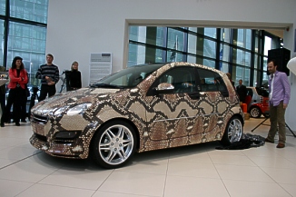 Die Gestaltung des smarts, den es in dieser Form nur ein einziges Mal gibt, ist an die Frühjahr-Sommerkollektion 2006 von Unrath & Strano angelehnt, zu der sie durch die Pflanzen- und Tierwelt auf Mauritius inspiriert wurden. Neben Schmetterlingen und Lotusblüten spielt die Schlange sowohl in der äußeren Gestaltung des Fahrzeugs als auch im Innenraum eine zentrale Rolle. So verfügt der smart forfour "dressed by Unrath & Strano" über eine komplette Lederausstattung in Schlangenoptik - aber natürlich wurde dafür kein echtes Schlangenleder verwendet. Darüber hinaus veredeln 17 000 Swarovski-Steine das Interieur. Die Entwürfe der Designer hat die smart-BRABUS GmbH in Bottrop umgesetzt. "Das ist ein Auto zum Auffallen. Der Käufer dieses Unikats wird nicht nur von dessen außergewöhnlichem Design, sondern auch von den exklusiven Materialien begeistert sein. Und wie bei jedem smart wird der Fahrspaß natürlich gleich mitgeliefert", so Christian Becker, der in der DaimlerChrysler Vertriebsorganisation Deutschland für das smart Verkaufsmanagement verantwortlich ist.