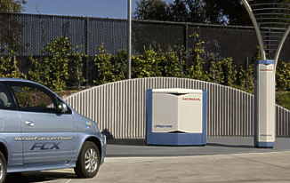 In der HES III verrichtet ein neu entwickelter, sehr leistungsstarker Reformer seinen Dienst, der Erdgas in Wasserstoff umwandelt. Dadurch vergrößern sich die Kapazitäten für die Produktion und Speicherung des Wasserstoffs um 50 Prozent. Auch kann die Station bei Energieausfällen als Notgenerator dienen. Der gespeicherte Wasserstoff versorgt dann die eingebaute Brennstoffzelle. Im Notbetrieb steht somit eine Leistung von 5 Kilowatt zur Verfügung. Honda verfolgt mit der HES III seine Strategie, mittel- und langfristige Alternativen zu traditionellen Energiequellen zu entwickeln. Die Kombination aus Energieerzeugung und Fahrzeugbetankung vor der eigenen Haustür ist dabei besonders attraktiv. Mit der dritten Generation der Honda Heimenergiestation ist ein weiterer Schritt getan, um ein entwicklungsfähiges, wasserstoffbasiertes und somit von Treibhausgasen und Schadstoffen freies Verkehrswesen zu schaffen. Sie wird in Verbindung mit Hondas FCX, dem weltweit fortschrittlichsten Brennstoffzellenfahrzeug, im Honda Amerika Forschungs- und Entwicklungsstandort in Torrance, Kalifornien, erprobt. Im Juni dieses Jahres erhielten erstmals Privatpersonen einen Honda FCX für den Alltagseinsatz. Jon und Sandy Spallino aus Kalifornien leasen den FCX für einen Zeitraum von zwei Jahren. Sie werden zusammen mit ihren beiden Kindern den Brennstoffzellenantrieb im Alltag einer vierköpfigen Familie erproben. Honda ist der erste und einzige Automobilhersteller, der die Zulassung eines Brennstoffzellenfahrzeugs für den öffentlichen Verkehrsraum in Amerika und Japan erlangte und diese Technologie dem Kunden zur Verfügung stellen kann. Der fortschrittliche Brennstoffzellenantrieb wurde zuvor im Flotteneinsatz erfolgreich getestet: 13 FCX-Fahrzeuge stehen seit drei Jahren allein in Amerika im Dienst öffentlicher Stellen in Kalifornien, New York und Nevada. Sieben weitere Exemplare sind bereits auf japanischen Straßen unterwegs. Im dichten Stadtverkehr benötigt der FCX dabei nur 3,8 Liter Wasserstoff je 100 km. (18. November 2005) |