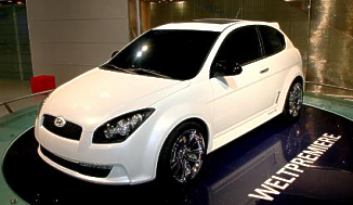 Im Mittelpunkt des Hyundai-Standes in der Mainmetropole steht jedoch die neue Ausgabe des Kleinwagens Getz, dem mit mehr als 100.000 verkauften Einheiten im vergangenen Jahr erfolgreichsten Modell der Marke in Europa. Herausragende Kennzeichen der Neu-auflage sind eine modifizierte Front- und Heckpartie, neue Motoren mit mehr Leistung sowie ein neues Farbkonzept für den Innenraum, das mit grauer Eintönigkeit konsequent Schluss macht. Die optischen Modifizierungen an der Karosserie des Bestsellers fallen dabei sofort ins Auge: Die Frontpartie des Neulings dominieren mandelförmige Scheinwerfer mit integrierten Blinkern, ein oval ausgelegter Kühlergrill, eine neue Motorhaube mit zwei markanten Sicken sowie ein überarbeiteter Frontstoßfänger mit geänderter Kühlluftöffnung, der nun runde statt eckige Nebelscheinwerfer auf-nimmt. Neue Rückleuchten und eine in der Mitte des Heckabschlusses sitzende Nebelschlussleuchte ergänzen die äußerlich erkennbaren Merkmale der jüngsten Getz-Generation. Im Innenraum präsentiert sich der als Drei- oder Fünftürer lieferbare Stadtflitzer farbenfroh: Je nach Ausstattungsversion verfügt der kleine Hyundai zukünftig über je nach Außenfarbe in Rot oder Blau ausgeführte Sitzflächen und Türinnenverkleidungen sowie ein zweifarbiges Lenkrad. In Kombination mit anthrazit-farbenen Sitzseitenwangen und Kopfstützen erhält der Getz so eine kräftige Prise Sportlichkeit. Auch technisch birgt die geringfügig auf 3,83 Meter gewachsene Karosserie des Getz zahlreiche Neuerungen: So ersetzt ein 65 kW (88 PS) starker Vierzylinder-Dieselmotor mit Common-Rail-Direkteinspritzung und variabler Turbolader-Schaufelgeoemetrie VGT den bislang eingesetzten Dreizylinder. Ebenfalls neu im Motorenangebot ist ein 1,4-Liter-Vierzylinder-Benziner. Der 16-Ventiler mit 71 kW (97 PS) tritt an Stelle des 1,3-Liter-Dreiventilers mit 63 kW (86 PS) und zeichnet sich vor allem durch bessere Fahrleistungen aus. Weiter optimiert wurden die beiden übrigen Motorvarianten, das auf 49 kW (67 PS) Leistung gesteigerte Einstiegstriebwerk mit 1,1 Litern Hubraum und die Spitzenmotorisie-rung: Das 78 kW (106 PS) starke 1,6 Liter Aggregat erhielt die kontinuierliche variable Ventilsteuerung CVVT, die den Durchzug aus niedrigen und mittleren Drehzahlen verbessert. Zudem ist im Modelljahr 2006 für den Getz das elektronische Stabilitätsprogramm ESP lieferbar. Sportliche Studie: Accent SR gibt Ausblick auf neues Kompaktmodell