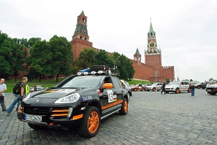 Stuttgart/Moskau - Um 11.20 Uhr Ortszeit (9.20 Uhr MESZ) ist am 3.8. der erste von insgesamt 25 Porsche Cayenne S Transsyberia vom Moskauer Roten Platz aus in Richtung Osten gestartet. Nach rund 7.000 Kilometern Fahrtstrecke wird die Transsyberia Rallye am 17. August nahe der mongolischen Hauptstadt Ulaanbataar enden. Porsche hat erstmals für einen solchen Wettbewerb eine Kleinserie aufgelegt und 25 Cayenne S Transsyberia für diese asiatische Langstrecken-Rallye gebaut.