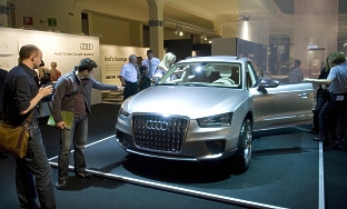 Ingolstadt - Die Besucher der diesjährigen Design Annual erleben eine Europapremiere: zum ersten Mal seit ihrem Debüt auf der Shanghai Motor Show 2007 wird die Studie Audi Cross Coupé quattro präsentiert. Sie definiert ein neues Segment im Feld der Crossover-Fahrzeuge, da sie Design und Dynamik eines kompakten Premium-Sportwagens mit dem Raumangebot und der Vielseitigkeit eines viersitzigen Sport Utility Vehicle verbindet.