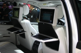 Die 10Jx22 Monoblock S Räder mit 295/35 ZR 22 YOKOHAMA Pneus stammen genauso aus dem BRABUS Programm wie das Tieferlegungsmodul für die Luftfederung und die Hochleistungsbremsanlage. Mit 12-Kolben Aluminium-Festsätteln und innenbelüfteten und gelochten 380 x 36 Millimeter Scheiben vorne und 6-Kolben-Festsätteln und 355 x 28 mm Bremsscheiben an der Hinterachse werden Verzögerungsleistungen erzielt, die normalerweise reinrassigen Sportwagen vorbehalten sind. Eine weitere BRABUS Spezialität sind exklusive Volllederausstattungen und attraktive Interieur-Accessoires. Für den EDAG LUV wurde in der BRABUS Sattlerei eine Kombination aus feinstem weißem Leder und schwarzen Nähten und Kedern angefertigt, die durch ihre hervorragende Verarbeitung bis in den letzten Winkel besticht. (7. März 2007) |