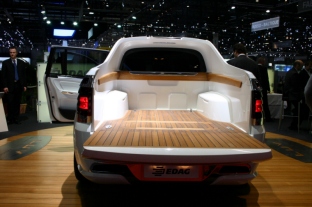 Genf - Am 06. März 2007 präsentierte die EDAG Engineering + Design AG das neue Concept Car, den „EDAG LUV““. Der auf Basis eines SUV der Oberklasse konzipierte „LUV“ zeigt sich vom Bug bis zum Heck im maritimen Look: Geöltes Teakholz auf der Motorhaube, als Bodenbelag im Innenraum und auf der eleganten Ladefläche vermitteln maritimes Flair.