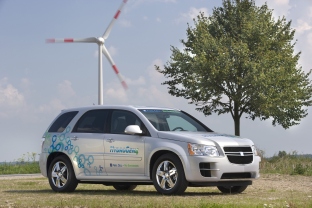 Der GM HydroGen4 ist die europäische Version des Chevrolet Equinox Fuel Cell, von dem in den USA noch im Herbst 2007 die ersten Exemplare - weltweit ist eine Flotte von mehr als 100 Exemplaren geplant - im Rahmen eines umfangreichen Test- und Demonstrationsprogramms auf die Straße gebracht werden. Die Fahrzeuge sollen in Kundenhand zu weiteren umfangreichen Erkenntnissen zu allen Aspekten der Fahrzeugnutzung und der Betankung mit Wasserstoff beitragen. Ab Mitte des nächsten Jahres nehmen dann insgesamt zehn HydroGen4 an der Alltagserprobung im Rahmen der Clean Energy Partnership (CEP) in Berlin teil. In dieser zweiten Phase der CEP werden verschiedene Kunden mit wechselnden Fahrern die Brennstoffzellenfahrzeuge, die sich dann unter ganz unterschiedlichen Fahrprofilen bewähren müssen, Tag für Tag einsetzen. Photo: GM (3.9.2007) |