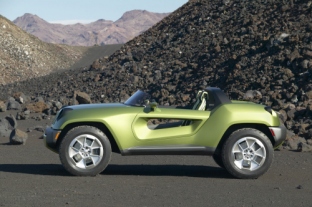 Das Concept Car Jeep Renegade ist ein sportlicher, minimalistischer, zweisitziger Vertreter des B-Segments und eignet sich ideal für Allwetter-Vergnügen wie Dünen-Surfen oder Felsenklettern. Mit Elektromotoren, die jede Achse einzeln antreiben, ist der Jeep Renegade auf Fahrspaß ausgelegt. Das fortschrittliche Antriebssystem des Concept Cars Jeep Renegade besteht aus einem Modul von Lithium-Ionen-Batterien, das dem Fahrzeug eine Reichweite von 64 Kilometern verleiht. Zur Verlängerung der Reichweite ist ein BLUETEC-Dieselmotor mit drei Zylindern und 1,5 Litern Hubraum an Bord. Damit verfügt das Concept Car über eine Gesamtreichweite von 644 Kilometern. Der BLUETEC-Diesel des Jeep Renegade leistet zusätzliche 115 PS SAE (86 kW) bei Emissionen, die im Vergleich zu denen üblicher Benzinmotoren wesentlich reduziert sind. Der Verbrauch des Renegade entspricht ungefähr dem Wert von 2,1 Litern pro 100 Kilometer bei einem ausschließlich mit Benzin betriebenen Fahrzeug – was eine Verbrauchsreduzierung auf ein Viertel bis ein Fünftel bedeutet. Die Leichtbau-Aluminium-Architektur und das regenerative Bremssystem verbessern die Gesamteffizienz, die beiden Elektromotoren mit 200 kW (268 PS SAE) treiben ein hochleistungsfähiges Vierradantriebssystem mit Gelände-Untersetzung und Sperrdifferentialen an, das würdig ist, den Namen Jeep zu tragen. Die Materialien für den Bau des Jeep Renegade wurden gezielt unter Umwelt-Aspekten ausgewählt – sowohl in Bezug auf die Herstellung als auch auf die Wiederverwertbarkeit am Ende des Autolebens. Das gesamte Concept Car Jeep Renegade ist darauf ausgelegt, die Anzahl der für den Bau und die Funktion notwendigen Einzelteile auf ein Minimum zu reduzieren. So ist zum Beispiel das Heizung-, Lüftungs- und Klimatisierungssystem nicht kühlflüssigkeitsbasiert, Farben, Körnung und Glanz der Innenraumteile entstehen direkt bei der Formpressung. Sogar die matte Außenfarbe der leichtgewichtigen Verbundwerkstoff-Karosserie des Renegade entsteht beim Pressvorgang, um den bei der Lackierung üblichen Gebrauch von Lösungsmitteln zu vermeiden.