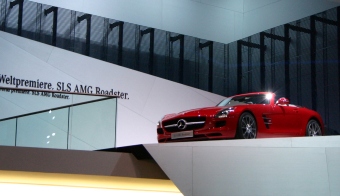 Seine einzigartige Sportwagentradition setzt Mercedes-Benz mit dem neuen, faszinierenden SLS AMG Roadster fort, der auf der IAA seinen ersten öffentlichen Auftritt hat – und das Potenzial, in der Traumwagen-Wertung ganz vorne zu landen. Prof. Dr. Weber: „Dieser einzigartige Open-Air-Sportler bietet Roadster-Performance in Perfektion.“ Seine technologischen Highlights lesen sich wie das Einmaleins des ambitionierten Sportwagenbaus: Aluminium-Spaceframe-Karosserie mit Komponenten aus Karbon, AMG 6,3-Liter-V8-Frontmittelmotor mit 571 PS, Siebengang-Doppelkupplungsgetriebe in Transaxle-Anordnung und Sportfahrwerk mit Aluminium-Doppelquerlenkerachsen begeistern Sportwagen-Enthusiasten. Neue SLK-Varianten: Effizienter Open-Air-Fahrspaß Ebenfalls Weltpremiere feiern in Frankfurt die Roadster SLK 250 CDI und SLK 55 AMG. Der 150 kW (204 PS) starke Vierzylinder-Diesel des SLK 250 CDI bringt den Zweisitzer in den Zukunfts-Disziplinen Sparsamkeit und Drehmoment an die Spitze seiner Klasse. Damit ermöglicht der erstmals im SLK angebotene Selbstzünder souveränen Fahrspaß auf kurvigen Landstraßen wie auch auf längeren Autobahn-Etappen. Das gilt auch für den SLK 55 AMG, den leistungsstärksten SLK aller Zeiten. Sein neu entwickelter AMG 5,5-Liter-V8-Motor mit Zylinderabschaltung kombiniert Top-Performance mit niedrigsten Verbrauchswerten. Mit einer Höchstleistung von 310 kW (422 PS) und einem maximalen Drehmoment von 540 Newtonmetern übertrifft der SLK 55 AMG alle direkten Wettbewerber. Gleichzeitig liegt sein Kraftstoffverbrauch um rund 30 Prozent niedriger als bei seinem Vorgänger. Die neue M-Klasse: Kultivierter Effizienz-Champion