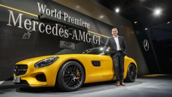 Das Herzstück des Mercedes-AMG GT, der neue 4,0-Liter-V8-Biturbo, tritt bereits aus niedrigen Drehzahlen spontan sowie extrem kraftvoll an und ermöglicht hervorragende Fahrleistungen. Topwerte wie 3,8 Sekunden für den Sprint von null auf 100 km/h und eine Höchstgeschwindigkeit von 310 km/h versprechen in Kombination mit der außergewöhnlichen fahrdynamischen Ausrichtung extrem schnelle Runden auf der Rennstrecke. Gleichzeitig ist der Zweisitzer dank praktischer Heckklappe, gut nutzbarem Kofferraum, hohem Langstreckenkomfort und den umfangreichen Mercedes‑Benz Intelligent Drive Assistenzsystemen ein unkomplizierter, komfortabler und zuverlässiger Begleiter im automobilen Alltag. „Mit dem neuen Mercedes-AMG GT starten wir erstmals in einem anspruchsvollen Sportwagen-Segment, das der Wettbewerb bereits hochkarätig besetzt hat. Dies ist für uns Ansporn und Antrieb zugleich, um Sportwagen-Enthusiasten in aller Welt zu beweisen, zu welcher Performance AMG fähig ist“, sagt Prof. Dr. Thomas Weber, Vorstandsmitglied der Daimler AG, verantwortlich für Konzernforschung und Mercedes-Benz Cars Entwicklung. „Mit dem neuen GT positionieren wir Mercedes-AMG als dynamische Sportwagen-Marke noch offensiver als bisher“, so Tobias Moers, Vorsitzender der Geschäftsführung der Mercedes-AMG GmbH. „Mit seiner technologischen Substanz erfüllt der Mercedes-AMG GT unsere hohen Ansprüche an Fahrdynamik, Agilität und Sportlichkeit. Der neue GT ist bereits der zweite, komplett eigenständig von Mercedes-AMG entwickelte Sportwagen. Gebaut wird er nach der Devise ‚Handcrafted By Racers‘ – das sagt alles über unsere Herkunft und unseren Spirit.“ Für Rennstrecken-Performance sorgt die Kombination aus Aluminium-Spaceframe, V8-Biturbomotor mit Trockensumpfschmierung, Siebengang-Doppelkupplungsgetriebe in Transaxle-Anordnung an der Hinterachse, Sperrdifferenzial, Sportfahrwerk mit Aluminium-Doppelquerlenkerachsen und das niedrige Leergewicht von 1540 Kilogramm. Das Konzept mit Frontmittelmotor und Getriebe in Transaxle-Anordnung ermöglicht eine vorteilhafte Gewichtsverteilung von 47 zu 53 Prozent zwischen Vorder- und Hinterachse. Dies führt in Verbindung mit dem tiefen Fahrzeugschwerpunkt zu einem äußerst agilen Handling und erlaubt hohe Kurvengeschwindigkeiten. Mit einem günstigen Leistungsgewicht von 3,3 Kilogramm pro PS etabliert sich der Mercedes-AMG GT selbstbewusst mit an der Spitze seines Segments. Auch bei der Wirtschaftlichkeit erzielt der Sportwagen einen neuen Bestwert: Der Kraftstoffverbrauch von 9,3 Litern je 100 Kilometer (NEFZ gesamt) stellt einen beachtlichen Effizienzsprung dar. Photos: Mercedes-Benz (10.09.2104)