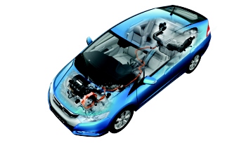 Damit entspricht der neue Insight ganz der Philosophie des Präsidenten der Honda Motor Europe (North) GmbH, Takayuki Arima, der die Ingenieure aufforderte, ein Hybridfahrzeug für jedermann zu bauen und nicht nur für die Luxusklientel. Doch mit dem neuen Insight ist das Kapitel Hybrid bei Honda noch nicht zu Ende. Im nächsten Jahr folgt ein sportliches Coupé auf der Basis des CR-Z Konzeptfahrzeugs und noch im selben Jahr folgt die Hybridvariante des Jazz. Bis jetzt brachte Honda über 300.000 Hybridfahrzeuge auf die Straße und der neue Insight wird dieses Erfolgskapitel sicher weiter schreiben. Die fünftürige Schräghecklimousine bietet im Innenraum Platz für 5 Personen und stellt ein Kofferraumvolumen von 408 Liter zur Verfügung. Angetrieben wird der Honda Insight von einem 14 PS starken Elektro-Motor und einem 88 PS-starken Verbrennungsmotor. Der 1,3-Liter-Leichtmetallmotor wird über ein stufenloses Getriebe angetrieben und erfüllt die Euro5-Norm. In Kombination mit dem neu entwickelten Honda-Hybridsystem Integrated Motor Assist (IMA), das aus dem Elektromotor, dem Batteriepack und einer kompakten „Intelligent Power Unit (IPU) besteht, ist der neue Insight umweltfreundlich unterwegs und emittiert im Durchschnitt lediglich 101 g CO2/km. Bei geringen bis mittleren Geschwindigkeiten lässt sich der Insight in bestimmten Fahrsituationen sogar rein elektrisch fahren.