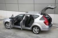 Auf dem 77. Genfer Automobilsalon feierte die Serienversion des cee’d Sporty Wagon dieses Jahr Premiere, die Markteinführung des dynamischen Sportkombis ist am 31. August gewesen. Produziert wird der Sporty Wagon im hochmodernen Werk von Zilina, in das Kia eine Milliarde Euro investiert hat. Wenn hier im Dezember die Fertigung des cee´d-Dreitürers aufgenommen wird, läuft in Zilina die gesamte cee´d-Modellfamilie vom Band. Mit diesen Modellen präsentiert die koreanische Marke die ersten Kia-Fahrzeuge, die nicht nur in Europa entwickelt wurden, sondern hier auch produziert werden. Der knapp 4,50 Meter lange Sportkombi liegt mit seinem Raumangebot für Passagiere und Gepäck an der Spitze seiner Klasse. 235 Millimeter ist der Sporty Wagon länger als die Steilheckversion und verfügt über ein Gepäckraumvolumen von 534 Liter - fast 200 Liter mehr als das Schwestermodell. Bis zu 1.664 Liter Stauvolumen bietet der Sporty Wagon bei umgeklappter Rücksitzbank (im Verhältnis 60:40 geteilt), der zweitbeste Wert in seiner Klasse.