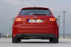 Als Topmodell der Baureihe führt Audi jetzt auch neben dem S3 den neuen S3 Sportback ein. Optisch unterscheiden sich die beiden S3 Modelle durch verchromte vertikale Doppelstreben am Kühlergrill, eine kräftigere Spoilerkante der Stoßfänger sowie durch die Chromringe, die die Nebelscheinwerfer einfassen. Von hinten zeigt ein platingrauer Diffusor und zwei große, ovale Auspuff-Endrohre, wen man hier vor sich hat. Elf Lackfarben stehen zur Wahl, darunter die S spezifischen Farben Glutorange, Imolagelb und Sprintblau Perleffekt.