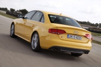 Serienmäßig kommt der S4 und S4 Avant mit einem Sechsgangschaltgetriebe, das sich durch kurze und präzise Schaltwege auszeichnet. Optional bietet Audi ein neues Doppelkupplungsgetriebe an, die Siebengang S tronic, die für blitzschnellen Gangwechel sorgt, wobei das neue Sportdifferenzial die Momente variabel zwischen den Hinterrädern verteilt. Neben dem vollautomatischen Modus, kann der Fahrer die Gänge aber auch mittels der Wippen am Lenkrad wechseln oder direkt am Schaltknauf. Den ultimativen Kick besorgt das Sportdifferenzial mit Audi drive select. Das Fahrdynamiksystem Audi drive select greift auf die Charakteristik der Gasannahme, die Schaltpunkte der Siebengang-S tronic und die Unterstützung der geschwindigkeitsabhängigen servotronic-Lenkung zu. Der Fahrer kann per Tastendruck entscheiden, ob diese Systeme im Modus „comfort“, „auto“ oder „dynamic“ arbeiten sollen. Wenn das Bediensystem MMI an Bord ist, steht eine vierte Ebene parat, die der Fahrer selbst nach seinem persönlichen Idealbild programmieren kann. Beim Anlenken oder Beschleunigen in der Kurve schickt das System den Großteil der Kraft gezielt zum kurvenäußeren Hinterrad und drückt so das Auto förmlich in die Kurve hinein. Jeder Tendenz zum Untersteuern sowie zum Übersteuern wird schon im Ansatz entgegen gewirkt. Für den Fahrer bedeutet das einen geringeren Lenkaufwand und eine noch höhere Querbeschleunigung. Der neue Audi S4 und der S4 Avant sind echte Hochleistungssportler in der Mittelklasse und faszinieren durch Sportlichkeit, Fahrdynamik und hohen Fahrkomfort. Das Design bringt diese Eigenschaften auch optisch zur Geltung durch spezielle Schürzen und Schwellerleisten, dezente Spoiler, ebenso wie die 18-Zoll-Leichtmetallräder im S-Design und die Vierfach-Auspuffanlage. Xenon Plus-Scheinwerfer mit Tagfahrlicht und Heckleuchten in LED-Technik setzen weitere Akzente. Der Einstiegspreis für die Audi S4 Limousine liegt bei 50.950 Euro und bei 52.600 Euro für den S4 Avant. Photos: Audi/Automotive Intelligence (07. November 2008)