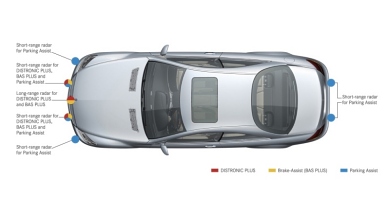 Zusätzlich schließt PRE-SAFE® in kritischen Fahrsituationen mit hoher Querdynamik die Seitenscheiben und das Schiebedach. Dieses mehrfach prämierte, präventive Schutzsystem komplettiert Mercedes-Benz in der CL-Klasse erstmals durch die neu entwickelte PRE-SAFE®-Bremse. Sie arbeitet mit dem Bremsassistenten PLUS (BAS PLUS) zusammen, der den Autofahrer vor einem drohenden Auffahrunfall optisch und akustisch warnt und automatisch den notwendigen Bremsdruck berechnet, um den Crash zu vermeiden. Diese Bremskraftunterstützung steht beim Tritt aufs Bremspedal sofort zur Verfügung. Reagiert der Autofahrer indes nicht auf die BAS PLUS-Warnhinweise, nimmt die PRE-SAFE®-Bremse bei akuter Unfallgefahr eine automatische Teilbremsung vor und verzögert die CL-Klasse mit rund 40 Prozent der maximalen Bremsleistung. Durch die autonome Teilbremsung erhält der Fahrer ein weiteres spürbares Signal zu handeln. Betätigt er dann sofort die Bremse, steht die maximale Bremskraft zur Verfügung und der Unfall kann -- je nach Fahrsituation -- im letzten Moment verhindert werden. Ist das nicht möglich, verringert sich durch die PRE-SAFE®-Bremse die Aufprallschwere und damit das Verletzungsrisiko der Auto-Insassen. Ebenso wie der Bremsassistent PLUS nutzt auch die neue PRE-SAFE®-Bremse modernste Radartechnologie, um die Situation vor dem Auto zu erfassen und einen drohenden Unfall zu erkennen. Hinter der vorderen Stoßfängerverkleidung der CL-Klasse befinden sich zwei Nahbereichs-Radarsensoren mit einer Reichweite von 30 Metern und einem Abtastwinkel von 80 Grad. Das zusätzliche Fernradar in der Kühlermaske reicht 150 Meter weit. BAS PLUS und PRE-SAFE®-Bremse bietet Mercedes-Benz auf Wunsch in Verbindung mit dem Abstandsregel-Tempomaten DISTRONIC PLUS an. Assistenzsysteme: Leichter Einparken mithilfe von Radarsensoren Auf Basis der Radartechnik arbeitet auch die neu entwickelte Parkführung (Wunschausstattung, lieferbar ab Dezember 2006): Die Sensoren erfassen beim Vorbeifahren die Länge einer Parklücke und zeigen im Cockpit-Display an, ob der Platz zum Einparken ausreicht. Nachdem der Rückwärtsgang eingelegt ist, erscheint auf dem Display eine symbolische Darstellung der Einparksituation; Hilfslinien zeigen den erforderlichen Lenkwinkel an und weisen den Weg in die Parklücke. Nachtsicht-Assistent mit Infrarot-Scheinwerfern, Rückfahrkamera, Sprachbedienung für Autoradio, DVD-Wechsler und Navigation sowie Reifendruckkontrolle sind weitere, auf Wunsch lieferbare, Mercedes-Assistenzsysteme für mehr Fahrsicherheit und Komfort. Motoren: Acht- und Zwölfzylinder mit deutlichem Leistungsplus Mit den derzeit leistungsstärksten Mercedes-Motoren ist das neue Luxus-Coupé auf Landstraße und Autobahn allen Herausforderungen gewachsen. Der Achtzylinder des CL 500 leistet 285 kW/388 PS und entfaltet ab 2800/min ein maximales Drehmoment von 530 Newtonmetern. Damit übertrifft der neu entwickelte Motor das bisherige V8-Triebwerk in der Leistung um 26 und beim Drehmoment um 15 Prozent.