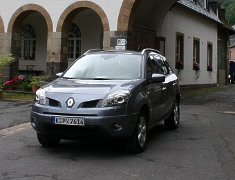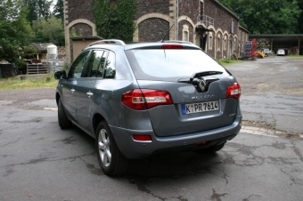 Der 4,52 m lange und 1,865 m breite Koleos ist nur wenig größer als der Kompaktvan Scénic. Die kurzen Überhänge, die hohe Bodenfreiheit und die kräftig ausgestellten Radhäuser sowie der robuste Stoßfänger am Heck unterstreichen den typischen SUV-Charakter. Die großen Heckleuchten sitzen weit oben, wo sie gut vor Schmutz und Kratzern geschützt sind. Überhaupt wirkt das Interieur sehr geräumig und gut organisiert. Die Basis für das großzügige Raumgefühl ist seine Höhe von 1,69 m (1,71 m mit Dachgalerie), die eine Kopffreiheit von 94,6 cm vorne und 88,5 cm hinten ermöglicht. Die erhöhte Sitzposition vermittelt eine gute Rundumsicht und damit ein souveränes Fahrgefühl. Gestartet wird der Koleos mit dem Start/Stop-Button. Dank der Servolenkung und der kompakten Abmessungen lässt sich der Koleos mühelos auch durch engen Stadtverkehr steuern. Optional bietet Renault ein zweiteiliges Panorama-Glas-Hubschiebedach an, das mit ca. 1,50 Meter Länge zu den größten in der kompakten SUV-Klasse gehört und das noch mehr Helligkeit in den Innenraum bringt. Zahlreiche Ablagefächer lassen das Interieur praktisch und aufgeräumt erscheinen. Besonders angenehm an heißen Sommertagen ist das gekühlte Handschuhfach mit einem Fassungsvermögen von 15 Litern.