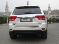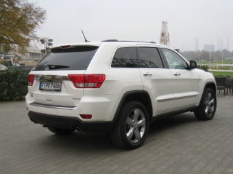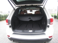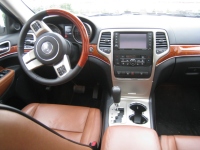 Im Interieur fällt das Zusammenspiel von hochwertigen Materialien und solider Verarbeitung auf. Das Holz-Leder-Lenkrad ist beheizbar und enthält die Bedienelemente für Audiosystem, Cruise Control und Bordcomputer. Besonders praktisch, gerade in der Schmuddelwetterzeit ist die elektrisch betriebene Heckklappe mit Fernbedienung am Zündschlüssel. Unser Testwagen hatte als Motorisierung den V6 3.0 CRD mit Common-Rail-Direkteinspritzung (Typ Multijet II). Der Sechszylinder Turbodiesel leistet 241 PS (177 kW) und erreicht ein Drehmoment von 550 Nm, das zwischen 1800-2800 Umdrehungen pro Minute anliegt. Im Durchschnitt werden 8,3 l Benzin auf 100 Kilometer verbraucht, das entspricht einem CO2-Ausstoß von 218 g/km. Die Höchstgeschwindigkeit wird mit 202 km/h angegeben. Hochkomfortabel gibt sich auch die 5-Gang-Automatik. Neu ist die neue optionale Luftfederung Quadra-Lift™, die die legendären Offroad-Eigenschaften noch unterstreicht. Auf normaler Straße senkt man das Fahrzeug damit ab, woraus eine verbesserte Aerodynamik resultiert und offroad hat man bis zu 27 cm mehr Bodenfreiheit. Ebenfalls neu ist die Selec-Terrain™ Traktionskontrolle mit fünf verschiedenen Einstellungsmöglichkeiten, die für optimalen Halt auf jedem Untergrund sorgt, egal ob Schnee, Sand oder Felsgestein, onroad und offroad. Zwei verschiedene Allradsysteme stehen zur Verfügung. Quadra-Trac II für den Sechszylinder und Quadra-Drive II für den V8. Mit mehr als 45 Sicherheits- und Schutz-Ausstattungen zählt der neue Jeep Grand Cherokee zur Spitzengruppe im SUV-Segment.