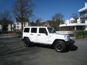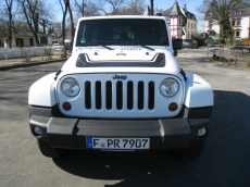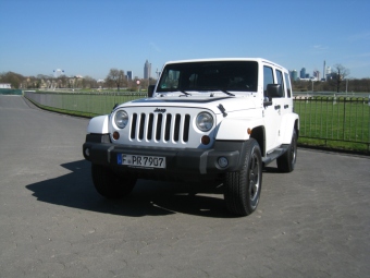 Seit April 2007 gibt es den Jeep Wrangler in Deutschland in zwei Karosserie-Versionen und zwar als zweitürigen Wrangler und als viertürigen Wrangler Unlimited. Der uns zur Verfügung gestellte Testwagen, ein Jeep Wrangler Unlimited Black Edition 2.8l CRD war allerdings nicht in schwarz, sondern in strahlendem Weiß lackiert. |